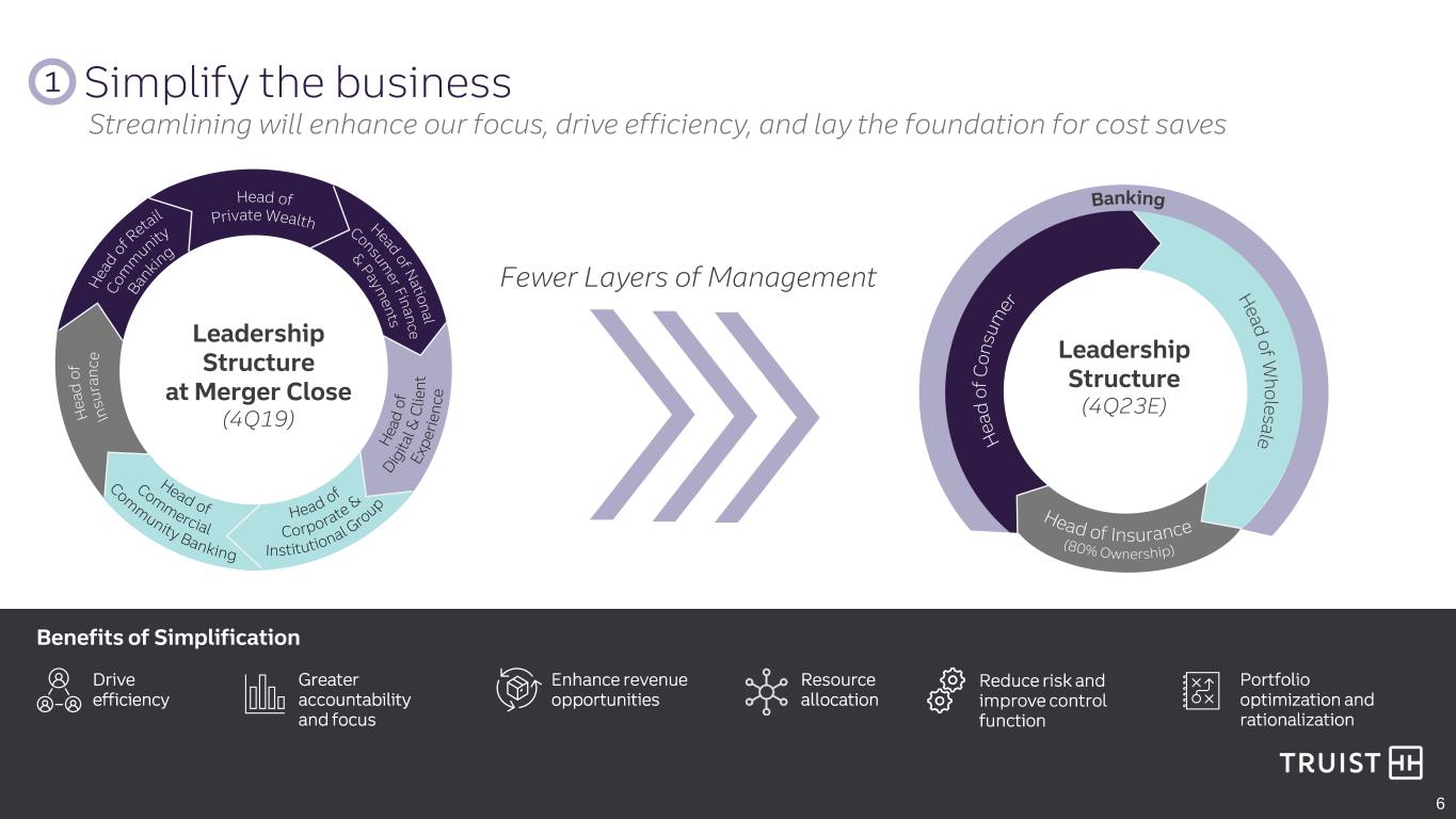 COMMITTED TO DELIVERING RESULTS N W Simplify the business Take out costs and lower expense growth in 2024+ Accelerate franchise momentum Improve capital position Align compensation to shareholder return 5 1 2 3 4 5