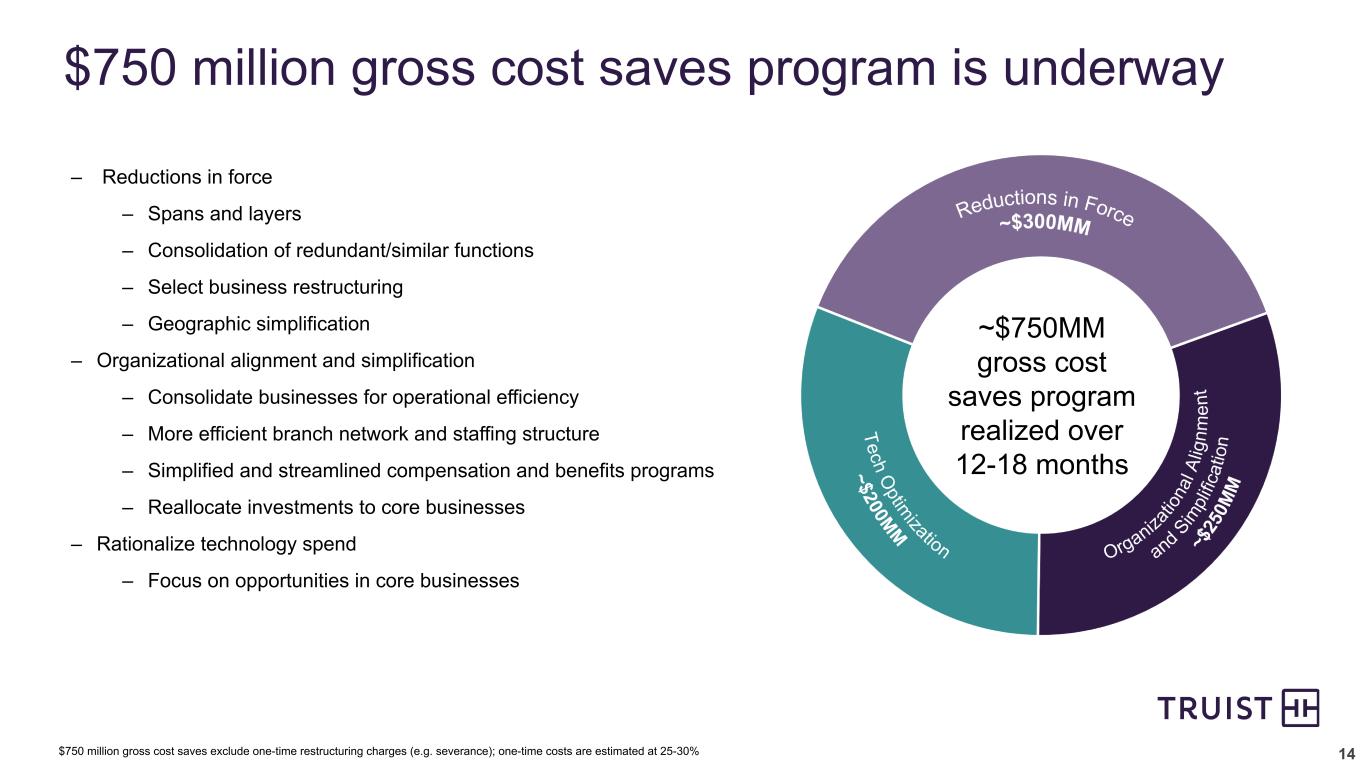 14$750 million gross cost saves exclude one-time restructuring charges (e.g. severance); one-time costs are estimated at 25-30% $750 million gross cost saves program is underway – Reductions in force – Spans and layers – Consolidation of redundant/similar functions – Select business restructuring – Geographic simplification – Organizational alignment and simplification – Consolidate businesses for operational efficiency – More efficient branch network and staffing structure – Simplified and streamlined compensation and benefits programs – Reallocate investments to core businesses – Rationalize technology spend – Focus on opportunities in core businesses ~$750MM gross cost saves program realized over 12-18 months