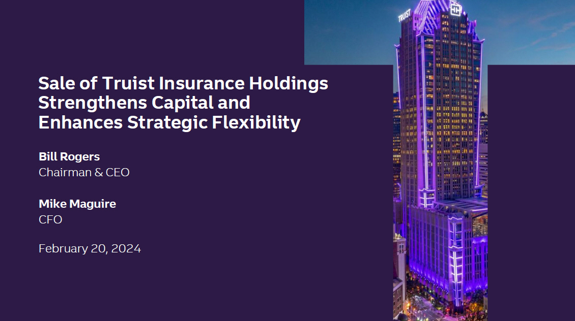 Sale of Truist Insurance Holdings Strengthens Capital and Enhances Strategic Flexibility Bill Rogers Chairman & CEO Mike Maguire CFO February 20, 2024