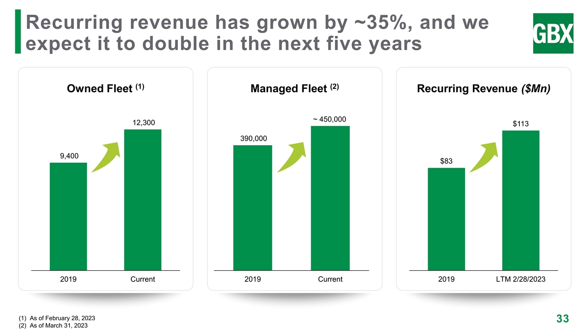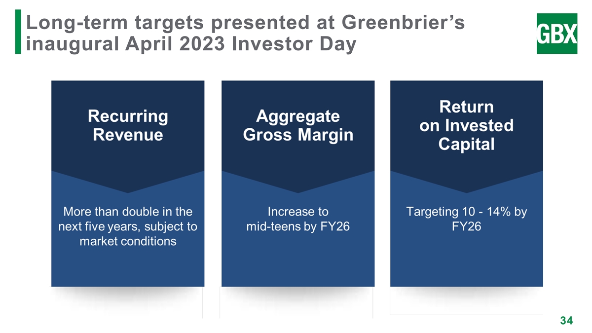 Long-term targets presented at Greenbrier’s inaugural April 2023 Investor Day 34