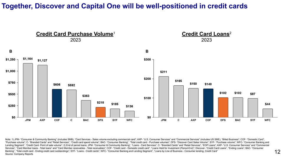 Discover will be additive and complementary to Capital One’s suite of credit card offerings Cash Back Travel Small Business Co-Brand 11 Note: Not comprehensive of all product offerings for Capital One