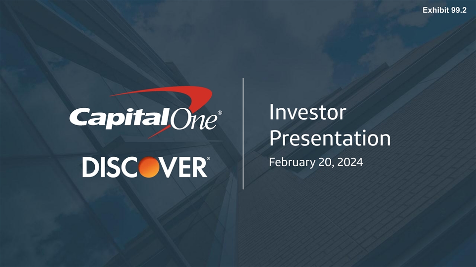Important Information About the Transaction and Where to Find It Capital One intends to file a registration statement on Form S-4 with the SEC to register the shares of Capital One’s common stock that will be issued to Discover stockholders in connection with the proposed transaction. The registration statement will include a joint proxy statement of Capital One and Discover that will also constitute a prospectus of Capital One. The definitive joint proxy statement/prospectus will be sent to the stockholders of each of Capital One and Discover in connection with the proposed transaction. INVESTORS AND SECURITY HOLDERS ARE URGED TO READ THE REGISTRATION STATEMENT AND JOINT PROXY STATEMENT/PROSPECTUS WHEN THEY BECOME AVAILABLE (AND ANY OTHER DOCUMENTS FILED WITH THE SEC IN CONNECTION WITH THE TRANSACTION OR INCORPORATED BY REFERENCE INTO THE JOINT PROXY STATEMENT/PROSPECTUS) BECAUSE SUCH DOCUMENTS WILL CONTAIN IMPORTANT INFORMATION REGARDING THE PROPOSED TRANSACTION AND RELATED MATTERS. Investors and security holders may obtain free copies of these documents and other documents filed with the SEC by Capital One or Discover through the website maintained by the SEC at http://www.sec.gov or by contacting the investor relations department of Capital One or Discover at: Capital One Financial Corporation Discover Financial Services 1680 Capital One Drive 2500 Lake Cook Road McLean, VA 22102 Riverwoods, IL 60015 Attention: Investor Relations Attention: Investor Relations investorrelations@capitalone.com investorrelations@discover.com (703) 720-1000 (224) 405-4555 Before making any voting or investment decision, investors and security holders of Capital One and Discover are urged to read carefully the entire registration statement and joint proxy statement/prospectus when they become available, including any amendments thereto, because they will contain important information about the proposed transaction. Free copies of these documents may be obtained as described above. Participants in Solicitation Capital One, Discover and certain of their directors and executive officers may be deemed participants in the solicitation of proxies from the stockholders of each of Capital One and Discover in connection with the proposed transaction. Information regarding the directors and executive officers of Capital One and Discover and other persons who may be deemed participants in the solicitation of the stockholders of Capital One or of Discover in connection with the proposed transaction will be included in the joint proxy statement/prospectus related to the proposed transaction, which will be filed by Capital One with the SEC. Information about the directors and executive officers of Capital One and their ownership of Capital One common stock can also be found in Capital One’s definitive proxy statement in connection with its 2023 annual meeting of stockholders, as filed with the SEC on March 22, 2023, and other documents subsequently filed by Capital One with the SEC. Information about the directors and executive officers of Discover and their ownership of Discover common stock can also be found in Discover’s definitive proxy statement in connection with its 2023 annual meeting of stockholders, as filed with the SEC on March 17, 2023, and other documents subsequently filed by Discover with the SEC. Additional information regarding the interests of such participants will be included in the joint proxy statement/prospectus and other relevant documents regarding the proposed transaction filed with the SEC when they become available. 3