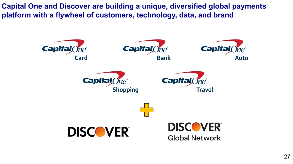 Capital One and Discover are building a unique, diversified global payments platform with a flywheel of customers, technology, data, and brand CardBankAuto ShoppingTravel 27