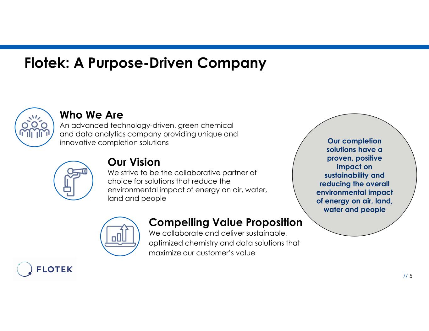Flotek: A Purpose-Driven Company // 5 Our completion solutions have a proven, positive impact on sustainability and reducing the overall environmental impact of energy on air, land, water and people Who We Are An advanced technology-driven, green chemical and data analytics company providing unique and innovative completion solutions Our Vision We strive to be the collaborative partner of choice for solutions that reduce the environmental impact of energy on air, water, land and people Compelling Value Proposition We collaborate and deliver sustainable, optimized chemistry and data solutions that maximize our customer’s value