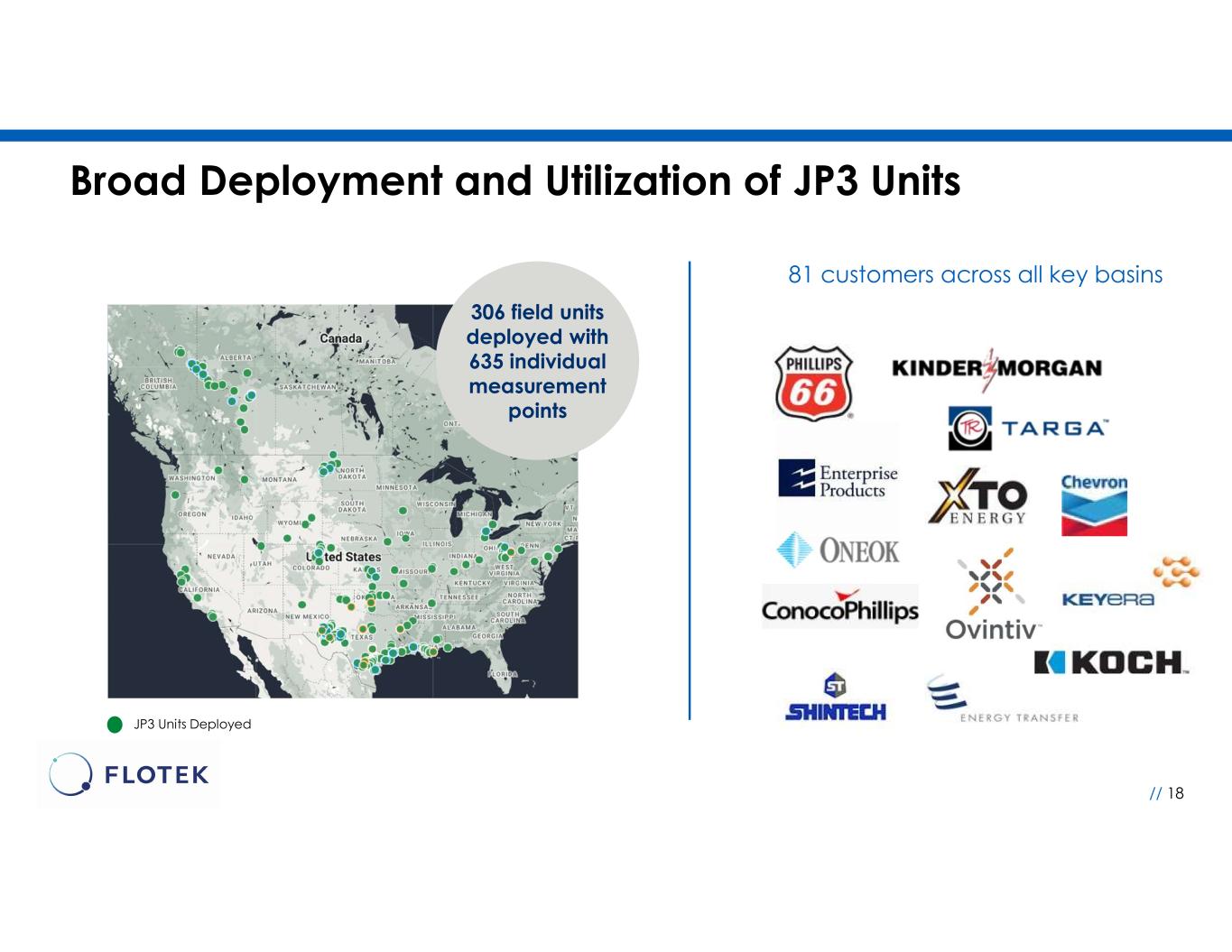 // 18 JP3 Units Deployed Broad Deployment and Utilization of JP3 Units 81 customers across all key basins 306 field units deployed with 635 individual measurement points