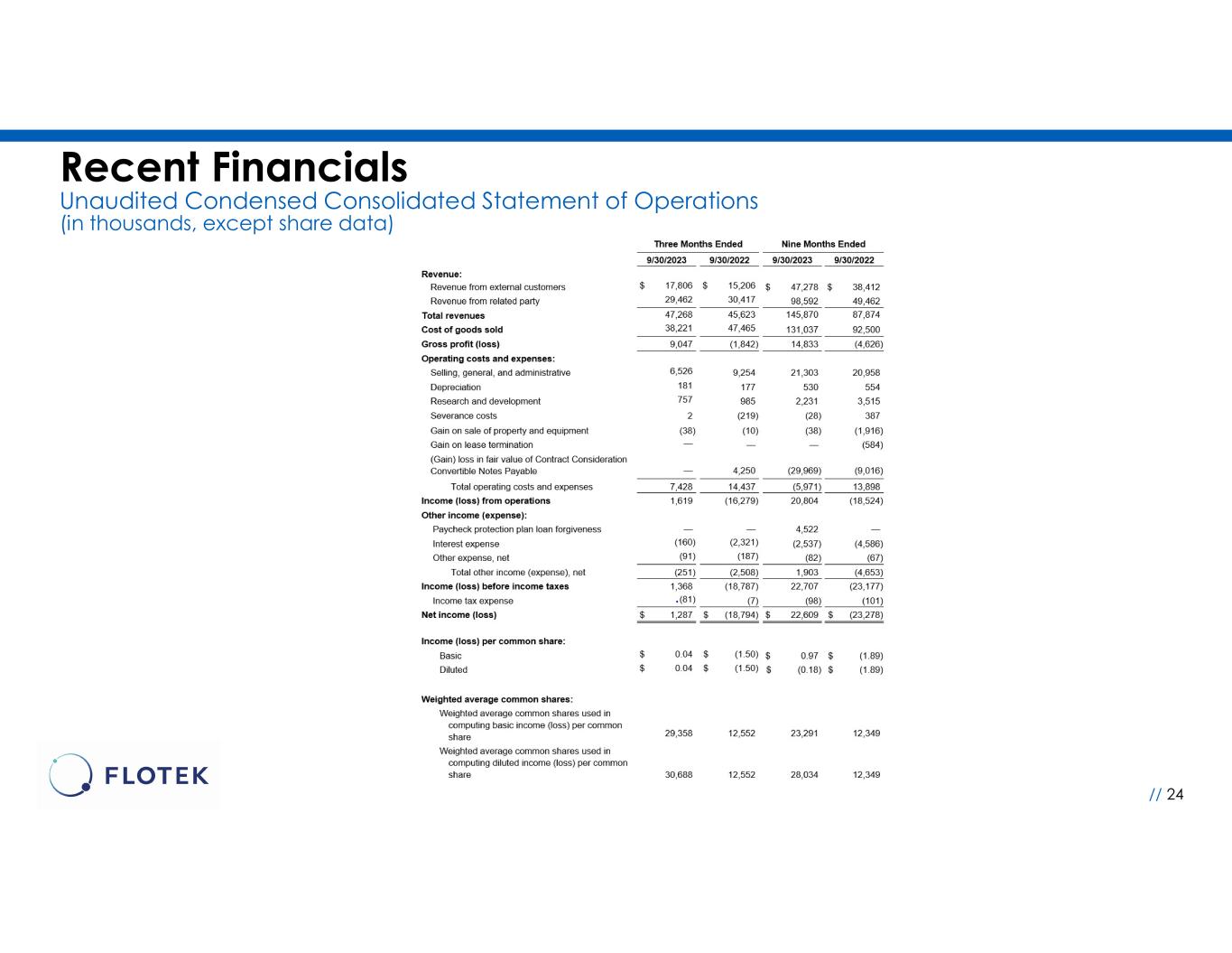Recent Financials Unaudited Condensed Consolidated Statement of Operations (in thousands, except share data) // 24