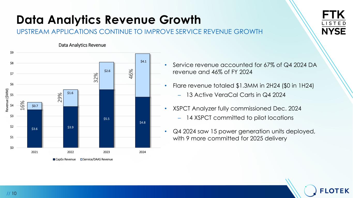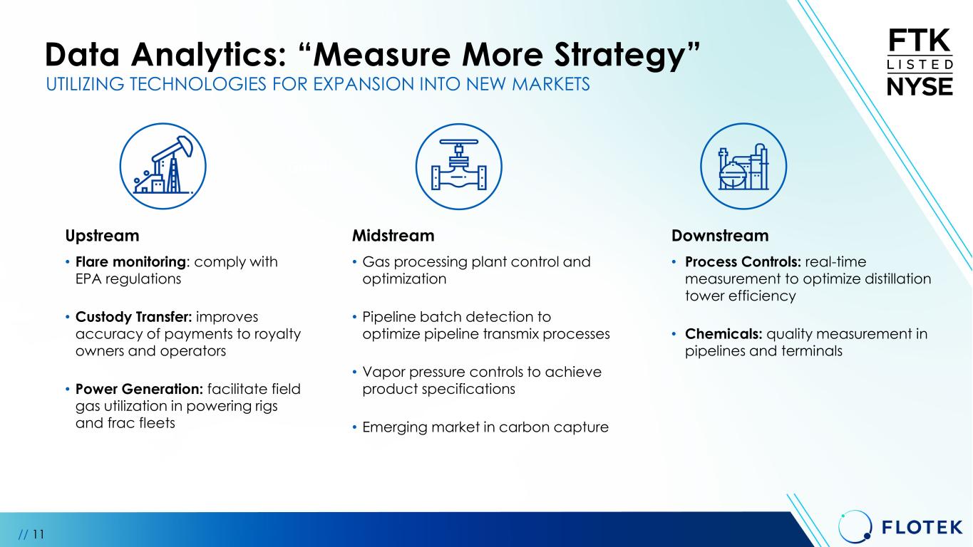 Data Analytics Revenue Growth // 10 • Service revenue accounted for 67% of Q4 2024 DA revenue and 46% of FY 2024 • Flare revenue totaled $1.3MM in 2H24 ($0 in 1H24) – 13 Active VeraCal Carts in Q4 2024 • XSPCT Analyzer fully commissioned Dec. 2024 – 14 XSPCT committed to pilot locations • Q4 2024 saw 15 power generation units deployed, with 9 more committed for 2025 delivery UPSTREAM APPLICATIONS CONTINUE TO IMPROVE SERVICE REVENUE GROWTH $3.6 $3.9 $5.5 $4.8 $0.7 $1.6 $2.6 $4.1 $0 $1 $2 $3 $4 $5 $6 $7 $8 $9 2021 2022 2023 2024 Re ve nu e ($ M M ) Data Analytics Revenue CapEx Revenue Service/DAAS Revenue 32 % 46 % 29 % 16 %