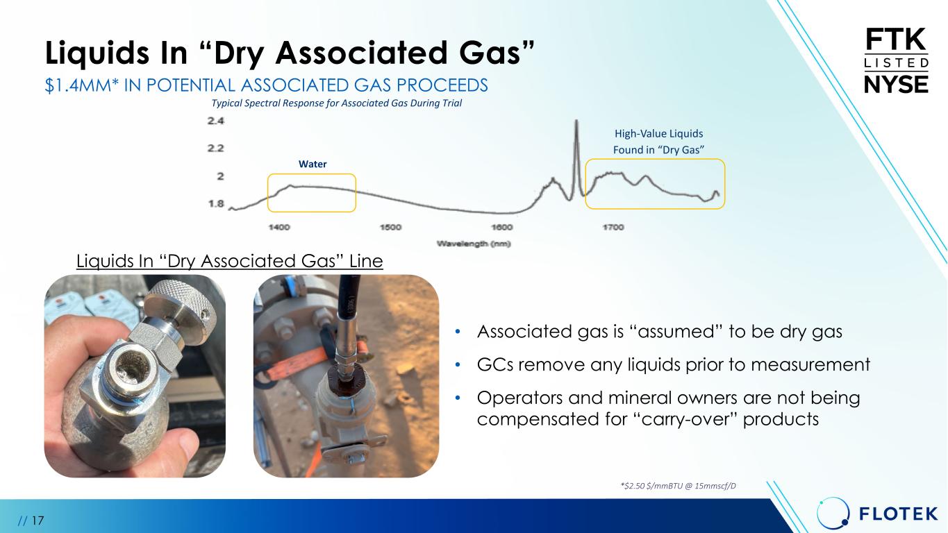 We tested against Traditional Gas Chromatography (GC) • Zero GC Samples matched the 60-day Average Gas BTU Value • 20-25% swings in “Associated Gas” BTU value • 16% Variances within manual sampling processes Data Analytics: XSPCT Custody Transfer Solution // 16 INITIAL PENETRATION INTO SIGNIFICANT UPSTREAM APPLICATIONS No Shelter, No Calibration Gas, Remotely/Continuously Monitored San Antonio Houston Example: 60 days of real-time BTU Values; demonstrates extreme variability. GC Spot Sample Lab Test +/- $4.4MM* ANNUAL PROCEEDS IMPACT *$2.50 $/mmBTU @ 15mmscf/D