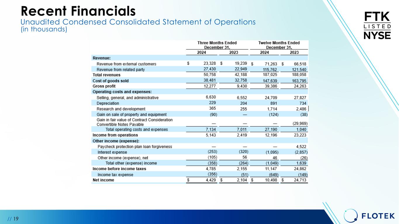 Recent Financials Unaudited Condensed Consolidated Statement of Operations (in thousands) // 19