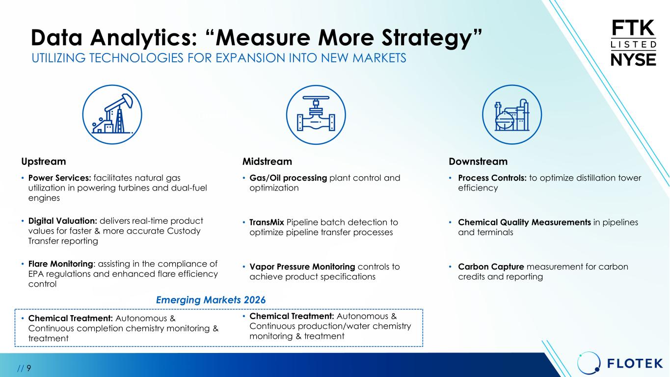 Data Analytics: “Measure More Strategy” Upstream • Power Services: facilitates natural gas utilization in powering turbines and dual-fuel engines • Digital Valuation: delivers real-time product values for faster & more accurate Custody Transfer reporting • Flare Monitoring: assisting in the compliance of EPA regulations and enhanced flare efficiency control • Chemical Treatment: Autonomous & Continuous completion chemistry monitoring & treatment Midstream • Gas/Oil processing plant control and optimization • TransMix Pipeline batch detection to optimize pipeline transfer processes • Vapor Pressure Monitoring controls to achieve product specifications • Chemical Treatment: Autonomous & Continuous production/water chemistry monitoring & treatment Downstream • Process Controls: to optimize distillation tower efficiency • Chemical Quality Measurements in pipelines and terminals • Carbon Capture measurement for carbon credits and reporting UTILIZING TECHNOLOGIES FOR EXPANSION INTO NEW MARKETS // 9 Growth Emerging Markets 2026
