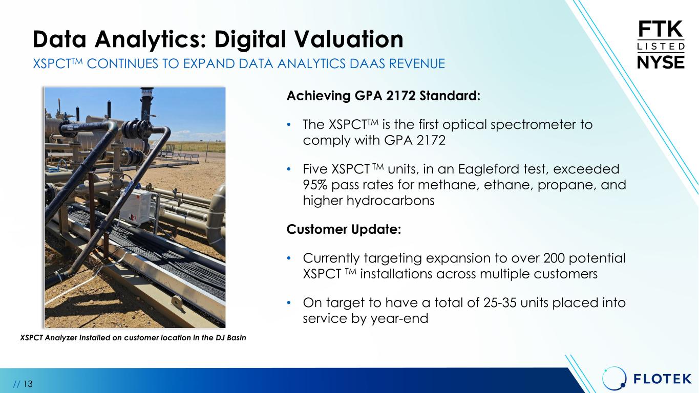 Data Analytics: XSPCT GPA 2172 // 14 FIRST OPTICAL SPECTROMETER TO MEET GPA 2172 CUSTODY TRANSFER STANDARD What Does This Mean? 1. XSPCT can operate at the same precision levels expected from online GC (autosampler) 2. XSPCT units meet ATSM standards for Digital Valuation of Hydrocarbons (Custody Transfer) 3. Reduced barrier for Customer Adoption