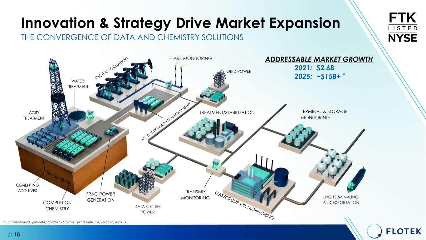 THE CONVERGENCE OF DATA AND CHEMISTRY SOLUTIONS COMPLETION CHEMISTRY FRAC POWER GENERATION TRANSMIX MONITORING TREATMENT/STABILIZATION FLARE MONITORING DATA CENTER POWER GRID POWER TERMINAL & STORAGE MONITORING LNG TERMINALING AND EXPORTATION WATER TREATMENT ACID TREATMENT CEMENTING ADDITIVES // 18 Innovation & Strategy Drive Market Expansion * Estimated based upon data provided by Enverus, Spears OMR, IEA, Technvio, and DEP ADDRESSABLE MARKET GROWTH 2021: $2.6B 2025: ~$15B+ *