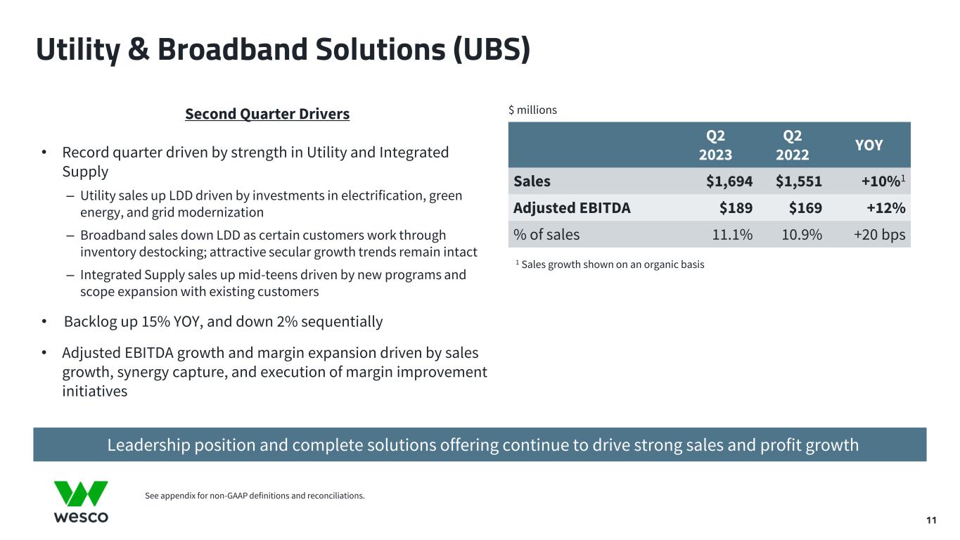 10 Wesco Data Center End-to-End Solutions Advisory services Logistics planning Material management Data center design Off-site staging Installation enhancement Asset management Rack and roll Secured cage delivery Pre-configuration and pre-termination Kitting and labeling Services Network infrastructure Electrical infrastructure Power and thermal solutions Power substation Security solutions Professional A/V Products Wesco Data Center Solutions Edge and Micro Data Centers Enterprise MTDC and Colocation Facilities Hyperscale Environments End-to-end data center lifecycle management Increased global services, solutions and offerings Expanded product and solutions portfolio and scope Focused expertise in white and gray spaces Extensive supplier and installer ecosystem Supporting All Data Center Environments Data Center Solutions approaching $2 billion in annual sales in 2023 within CSS Product enhancements Packaging Warranty tracking Safety training