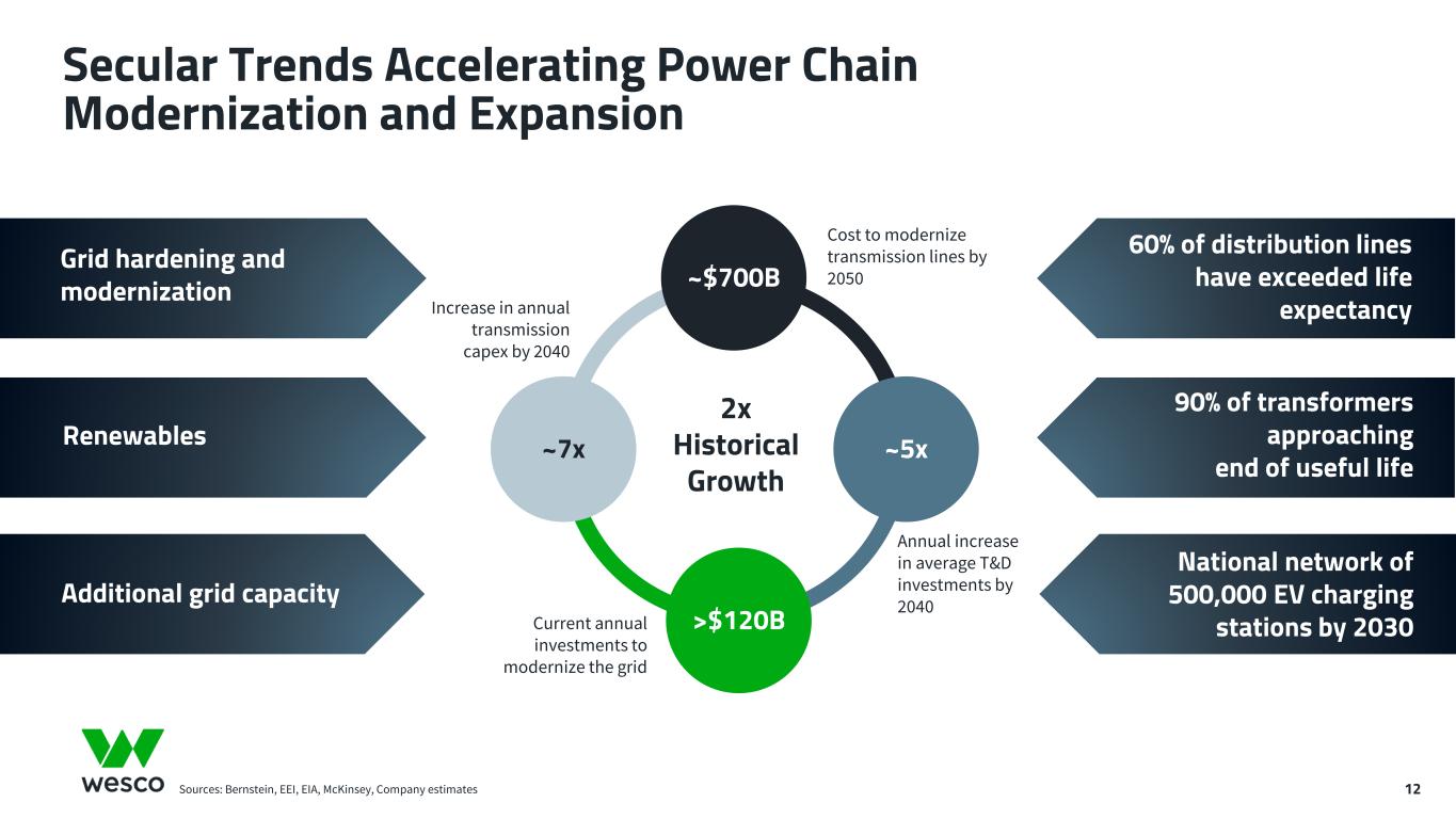 12 Secular Trends Accelerating Power Chain Modernization and Expansion Sources: Bernstein, EEI, EIA, McKinsey, Company estimates ~ ~$700B ~5x >$120B ~7x Cost to modernize transmission lines by 2050 Current annual investments to modernize the grid Annual increase in average T&D investments by 2040 Grid hardening and modernization Renewables Additional grid capacity Increase in annual transmission capex by 2040 60% of distribution lines have exceeded life expectancy 90% of transformers approaching end of useful life National network of 500,000 EV charging stations by 2030 2x Historical Growth