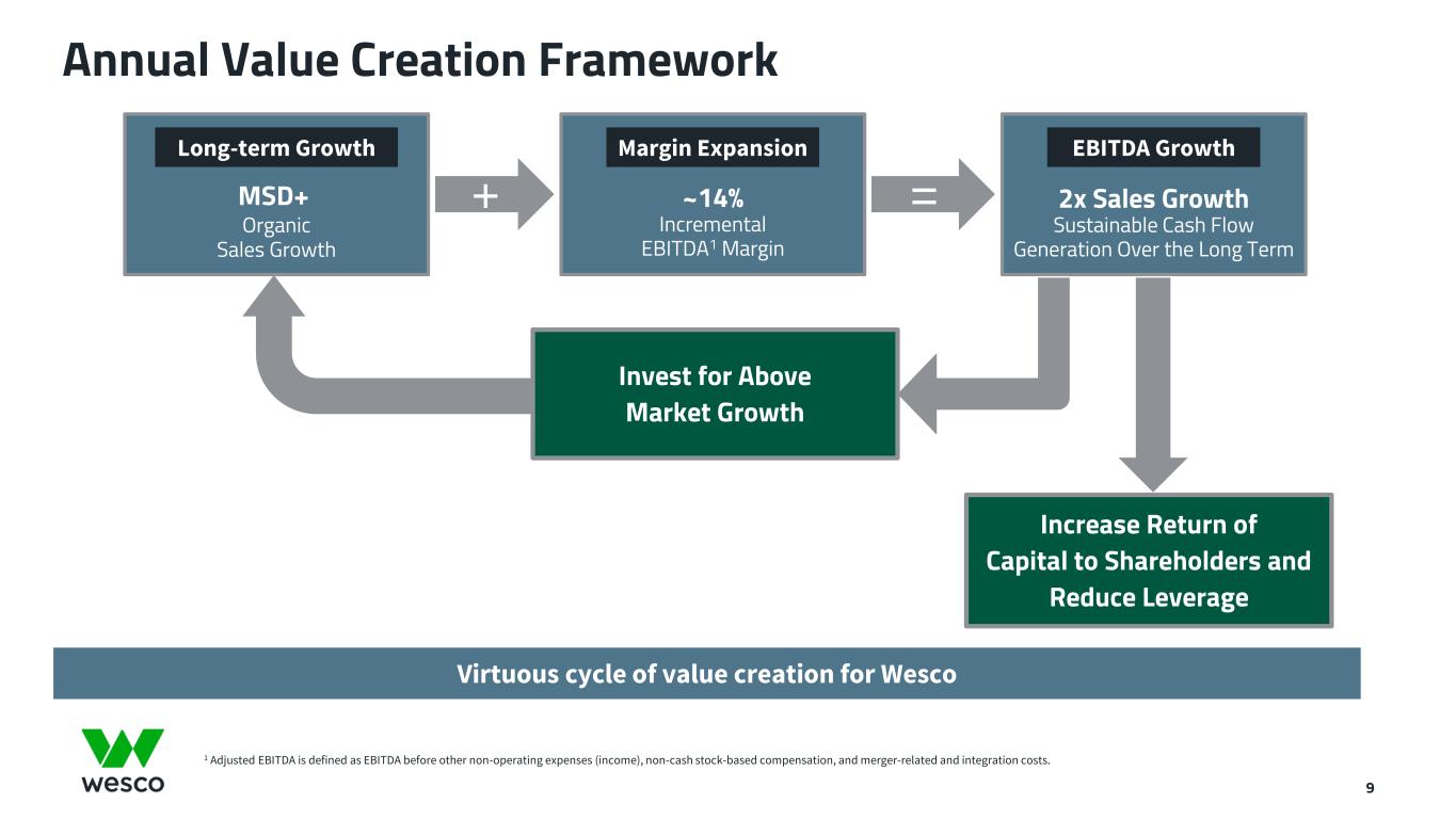 Digitally transforming our company Front Office Mid Office Back Office Products and PlatformOmnichannel Enterprise Systems Big Data Our Digital Transformation Innovating Across Our Entire Technology Landscape 8 Digital Services Data Office Supplier/OEM/Product Data Sets Wesco’s Data Sets Customer and Industry Data Sets