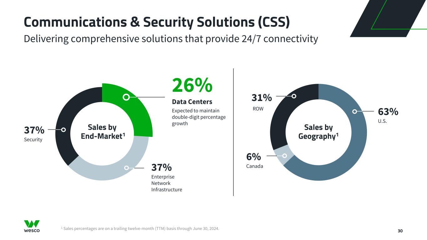 Communications & Security Solutions (CSS) Delivering comprehensive solutions that provide 24/7 connectivity 30 26% Data Centers 37% Enterprise Network Infrastructure 37% Security 63% U.S. 6% Canada 28% ROWExpected to maintain double-digit percentage growth 31 Sales by End-Market1 Sales by Geography1 1 Sales percentages are on a trailing twelve-month (TTM) basis through June 30, 2024.