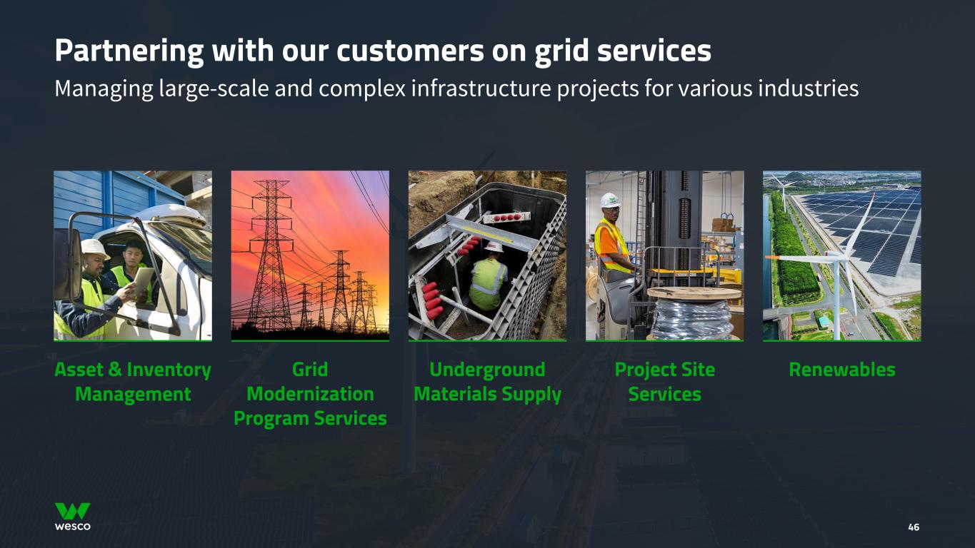 46 Managing large-scale and complex infrastructure projects for various industries Partnering with our customers on grid services Underground Materials Supply Asset & Inventory Management Grid Modernization Program Services Project Site Services Renewables