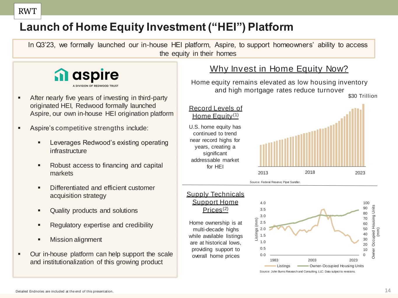 13 Continued Evolution of Distribution Channels Detailed Endnotes are included at the end of this presentation. Distribution has served as our key differentiator and we continue to evolve our channels as institutions place a premium on access to our assets ▪ Since inception, Redwood has built best-in-class securitization programs (Sequoia and CAFL) while also growing a distinguished and reliable network of whole loan buyers ▪ ~$100 billion of loans sold or securitized since inception ▪ The efficiency of these distribution channels has served as a critical differentiator for our platform Public Securitizations Where We’ve Been How We’re Evolving ▪ In recent quarters, we have witnessed continued interest from private credit partners in Redwood’s asset creation and sourcing capabilities ▪ In light of this demand, we have evolved our distribution channels and intend to continue pursuing additional structures across our platforms ▪ We continue to see additional channels / strategies for distribution that allow us to further: ▪ Deliver solutions to borrowers and lenders ▪ Enhance the efficiency of our capital ▪ Create durable and differentiated revenue streams for our shareholders Whole Loan Sales Private Securitizations Joint Ventures Separately Managed Accounts (“SMAs”) / Alternative Syndications      Active Channel In-Progress Channel