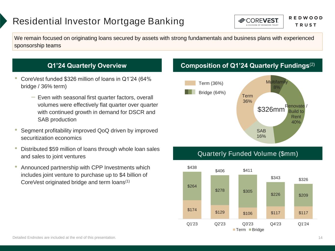 13 Our Differentiated Residential Consumer Platform We are uniquely positioned to deliver products and capture market share even as rates remain elevated 190+ Partners in Loan Seller Network #1 Non-Bank Jumbo Securitization Platform(1) Execution 2- 3x Faster Than Peers Growing Market & Wallet Share High-Quality Products & Underwriting Track Record of Strong Credit Performance Detailed Endnotes are included at the end of this presentation.