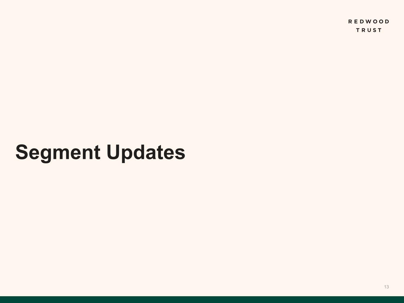 12 Banking Sector Dynamics Create Increased Volume Opportunities for Redwood Bank Jumbo Market Share ▪ Banks are ceding share to IMBs but still represent the majority of the market ▪ More banks are seeking solutions for on-the-run production and seasoned portfolios 86% 85% 78% 67% 2022 2023 2024 2025 YTD Detailed Endnotes are included at the end of this presentation. $15 Large Banks have Exited Residential Mortgage Lending in ’25 YTD ▪ A significant amount of seasoned jumbo collateral has traded in recent months, with the expectation for more activity on the horizon as banks continue to evaluate their balance sheets Our bank seller expansion has created an influx of loan activity Bank Jumbo Market Share Over Time(1) ▪ M&A activity is increasing which could drive additional mortgage loan portfolio sales at compelling valuations $ 21 $ 3 $ 50 $ 20 2022 2023 2024 2025 YTD # of Deals 32 9 22 19 Total Deal Size ($bn) Bank M&A Activity Recent Bank M&A Activity(2) Recent Bank Activity 3 of Seasoned Jumbo Loan Sales by Banks in ’25 YTDBillion+