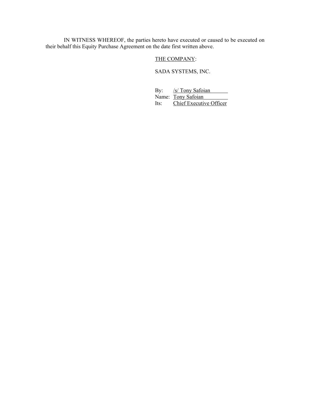 IN WITNESS WHEREOF, the parties hereto have executed or caused to be executed on their behalf this Equity Purchase Agreement on the date first written above. THE COMPANY: SADA SYSTEMS, INC. By: /s/ Tony Safoian Name: Tony Safoian Its: Chief Executive Officer
