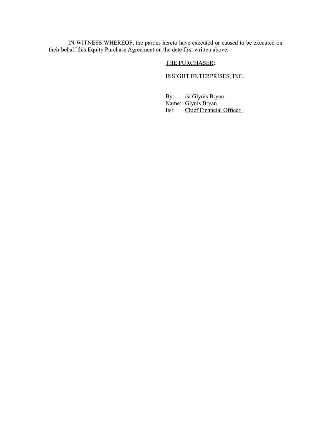 IN WITNESS WHEREOF, the parties hereto have executed or caused to be executed on their behalf this Equity Purchase Agreement on the date first written above. THE PURCHASER: INSIGHT ENTERPRISES, INC. By: /s/ Glynis Bryan Name: Glynis Bryan Its: Chief Financial Officer