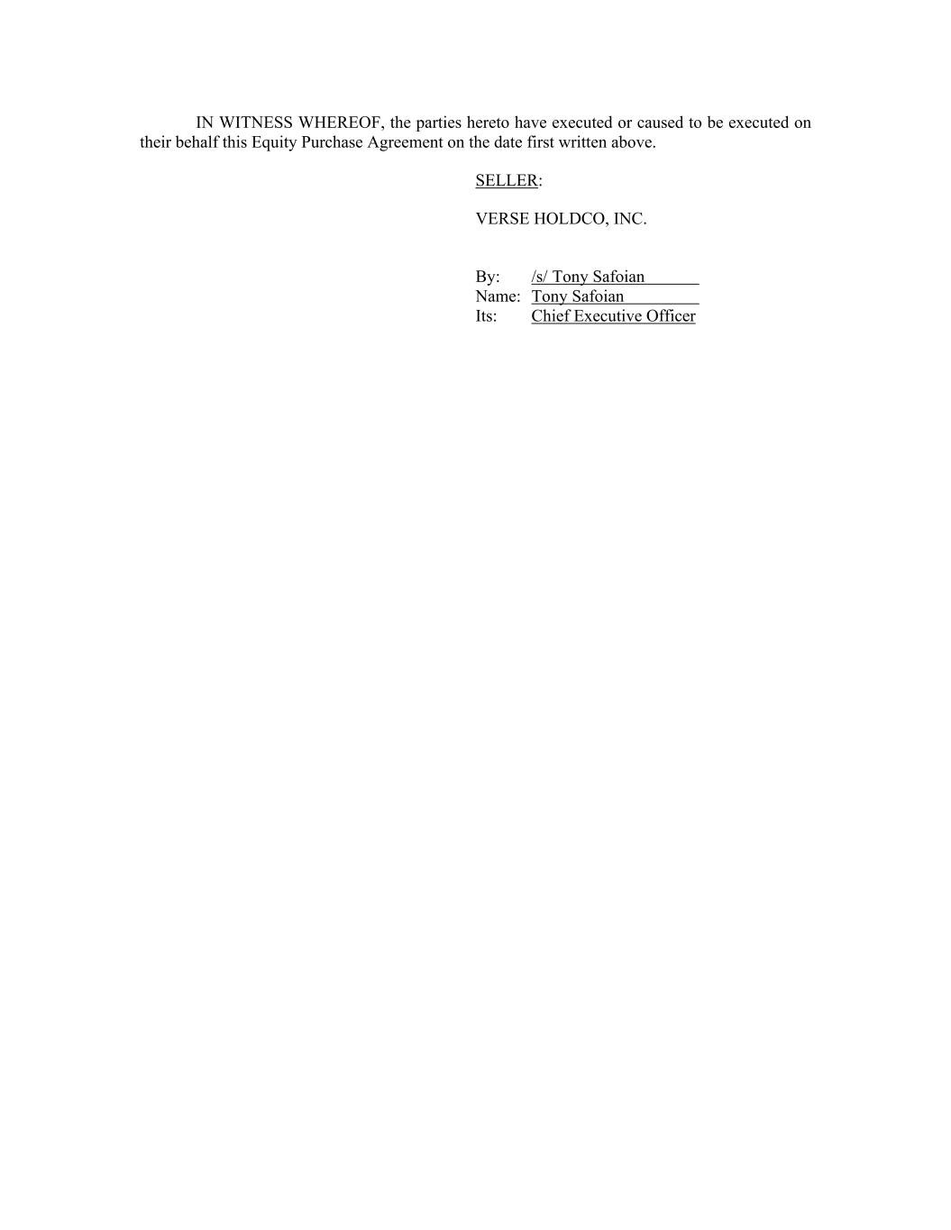 IN WITNESS WHEREOF, the parties hereto have executed or caused to be executed on their behalf this Equity Purchase Agreement on the date first written above. SELLER: VERSE HOLDCO, INC. By: /s/ Tony Safoian Name: Tony Safoian Its: Chief Executive Officer