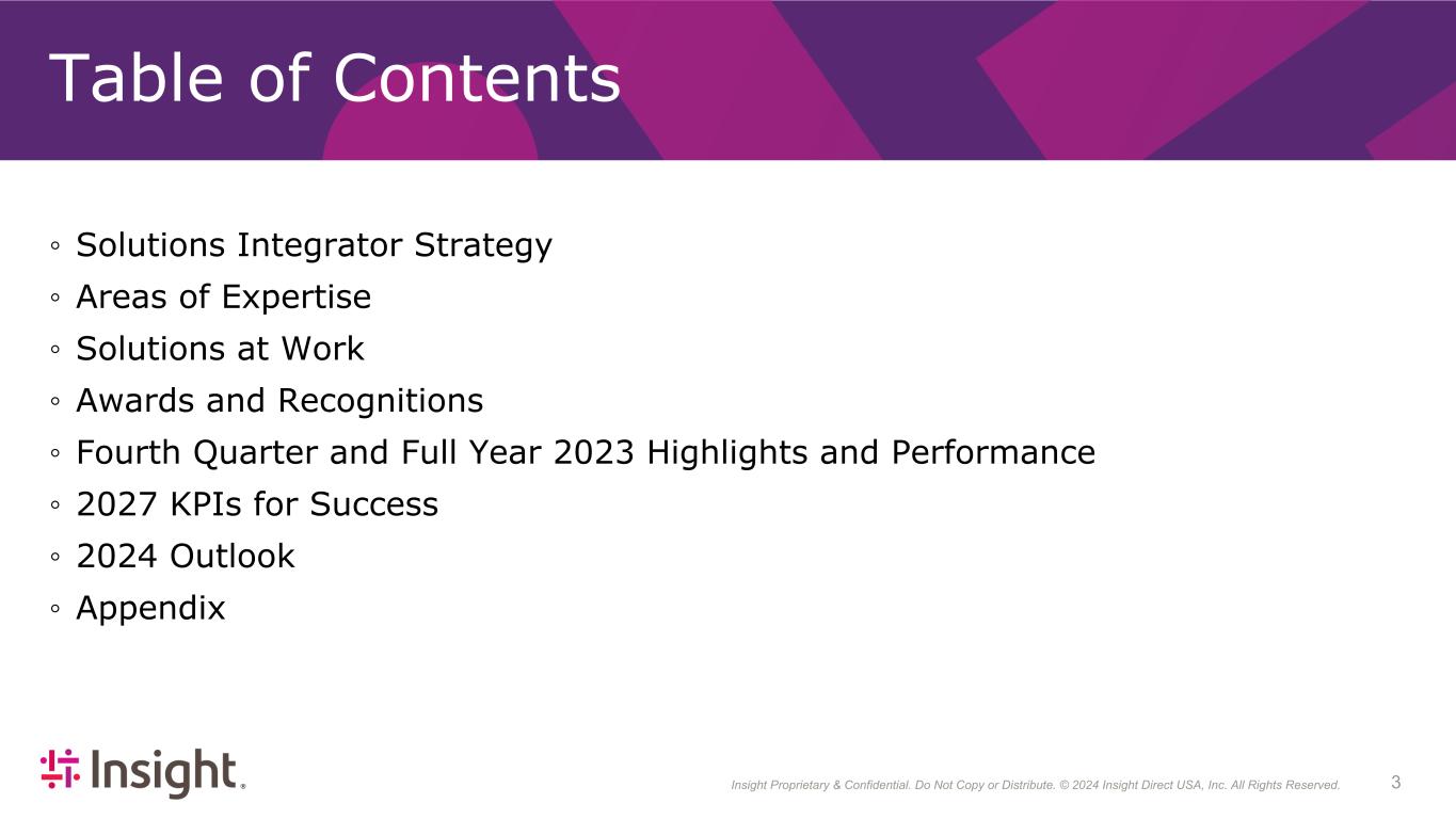 Insight Proprietary & Confidential. Do Not Copy or Distribute. © 2022 Insight Direct USA, Inc. All Rights Reserved. 34 Table of Contents ◦ Solutions Integrator Strategy ◦ Areas of Expertise ◦ Solutions at Work ◦ Awards and Recognitions ◦ Fourth Quarter and Full Year 2023 Highlights and Performance ◦ 2027 KPIs for Success ◦ 2024 Outlook ◦ Appendix
