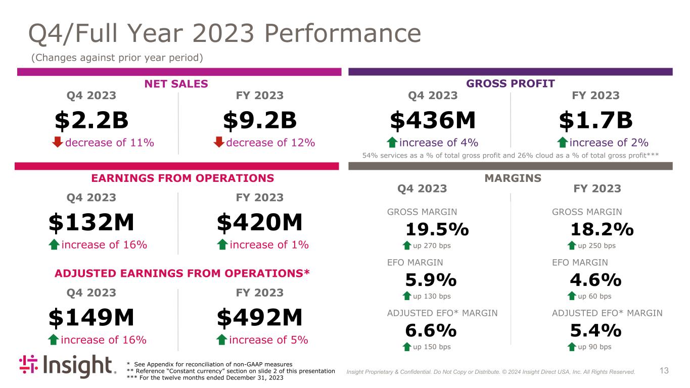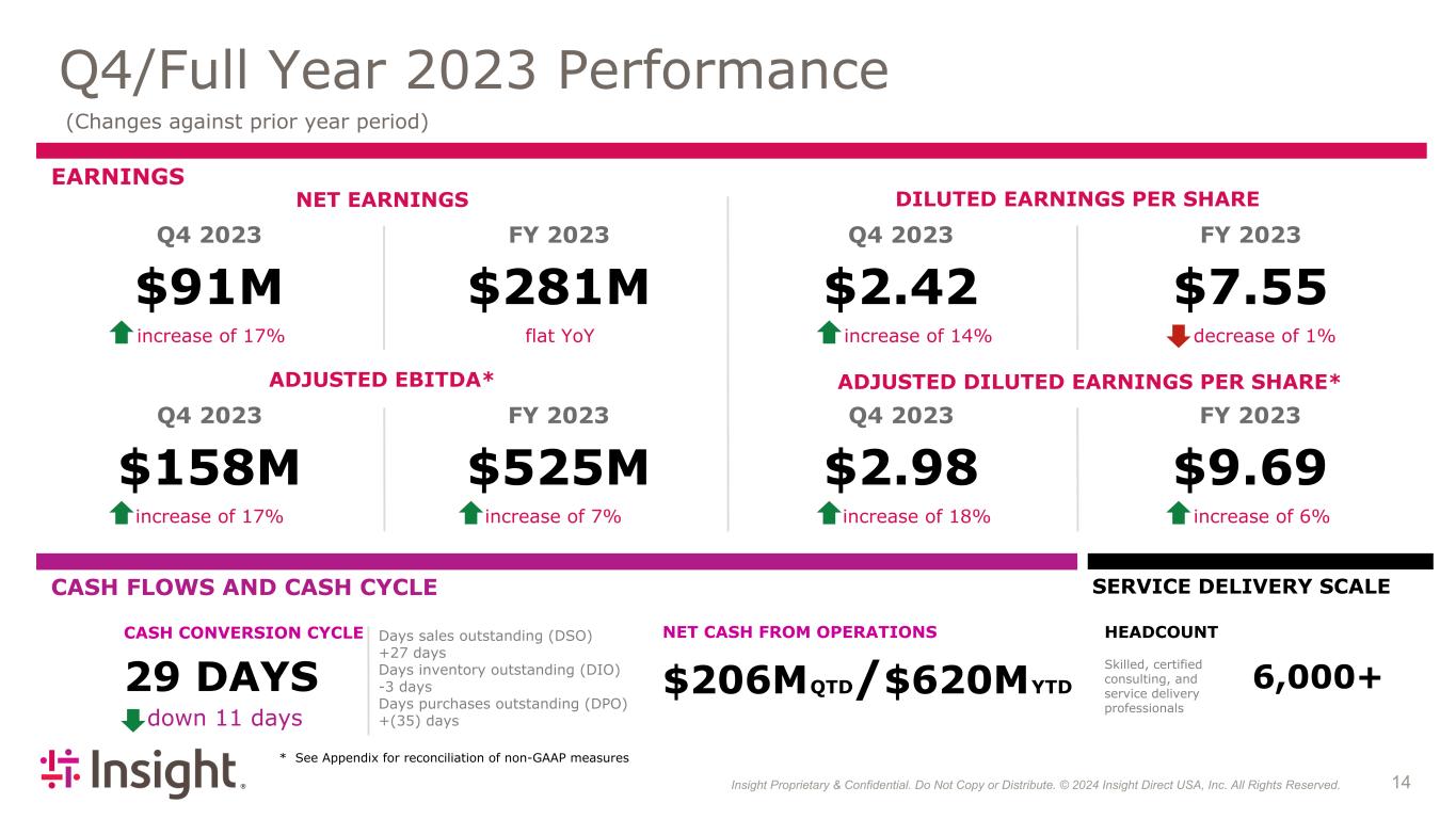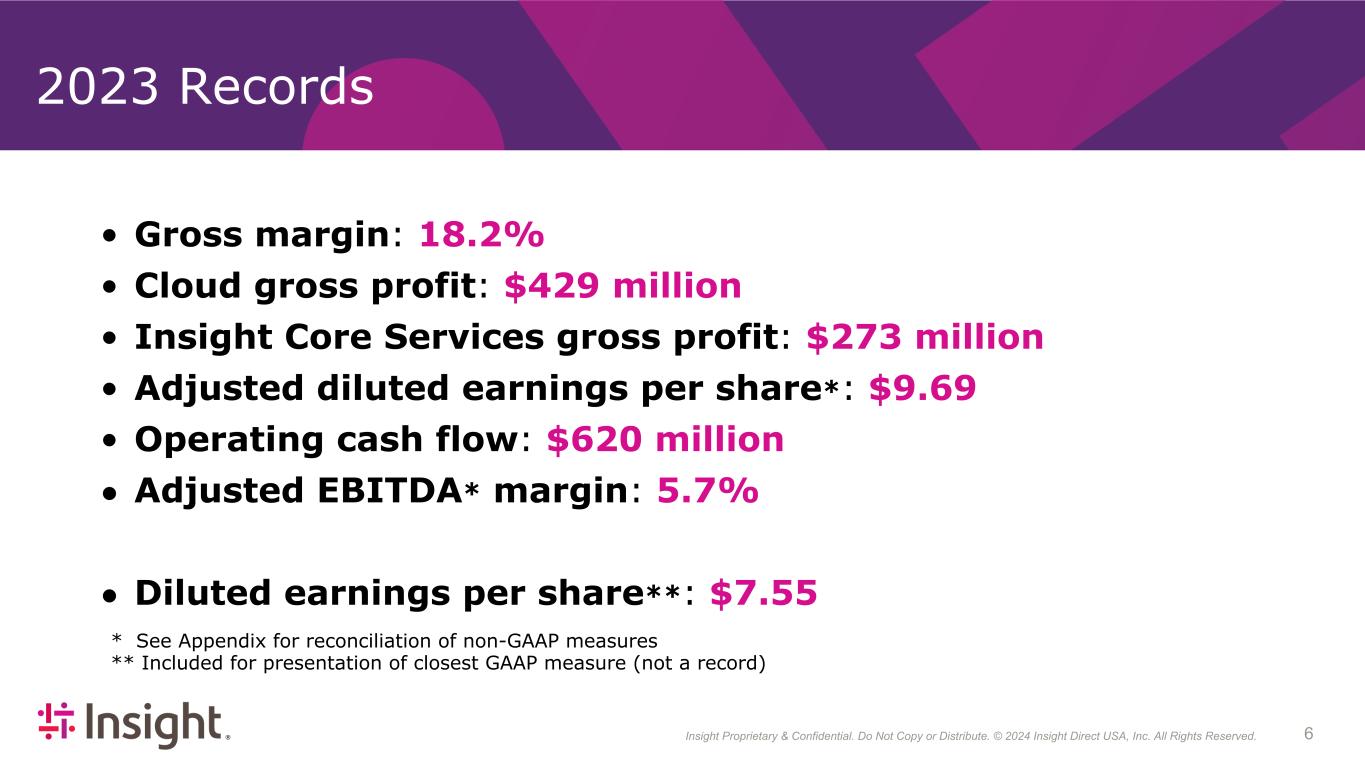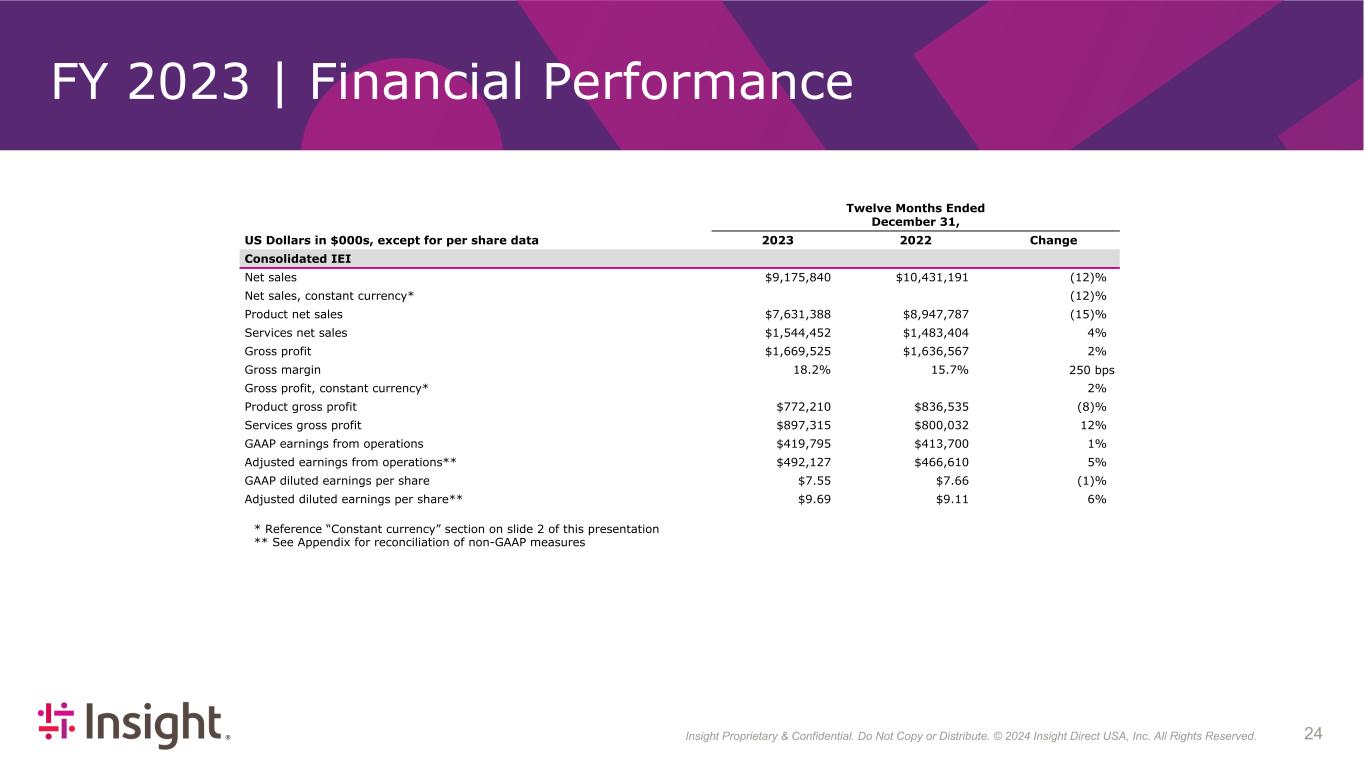 Insight Proprietary & Confidential. Do Not Copy or Distribute. © 2024 Insight Direct USA, Inc. All Rights Reserved. 1 Insight Enterprises, Inc. Fourth Quarter and Full Year 2023 Earnings Conference Call and Webcast