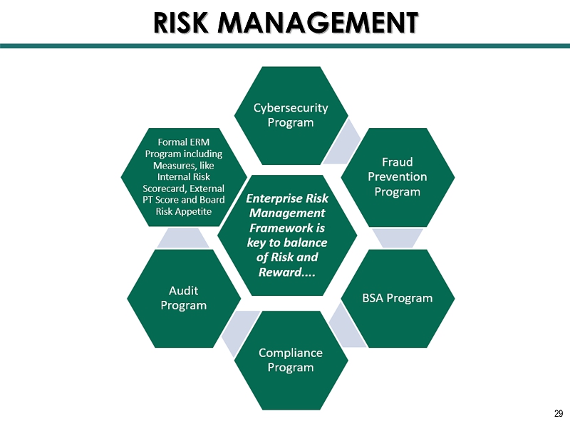 1Q24 Notes: » Key Loan Portfolio Sectors 28 • Only four loans secured by office buildings in excess of 50,000 square feet of rentable space. These four represent $10.4 million in loans outstanding and have a 33% weighted average loan - to - value. Credit Quality RISK MANAGEMENT