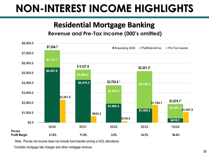 37 Residential Mortgage Banking Production (millions) NON - INTEREST INCOME HIGHLIGHTS $36.6 $107.2 $135.7