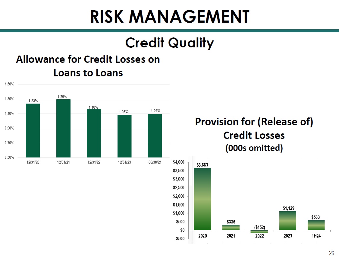 26 Provision for (Release of) Credit Losses (000s omitted) Credit Quality RISK MANAGEMENT