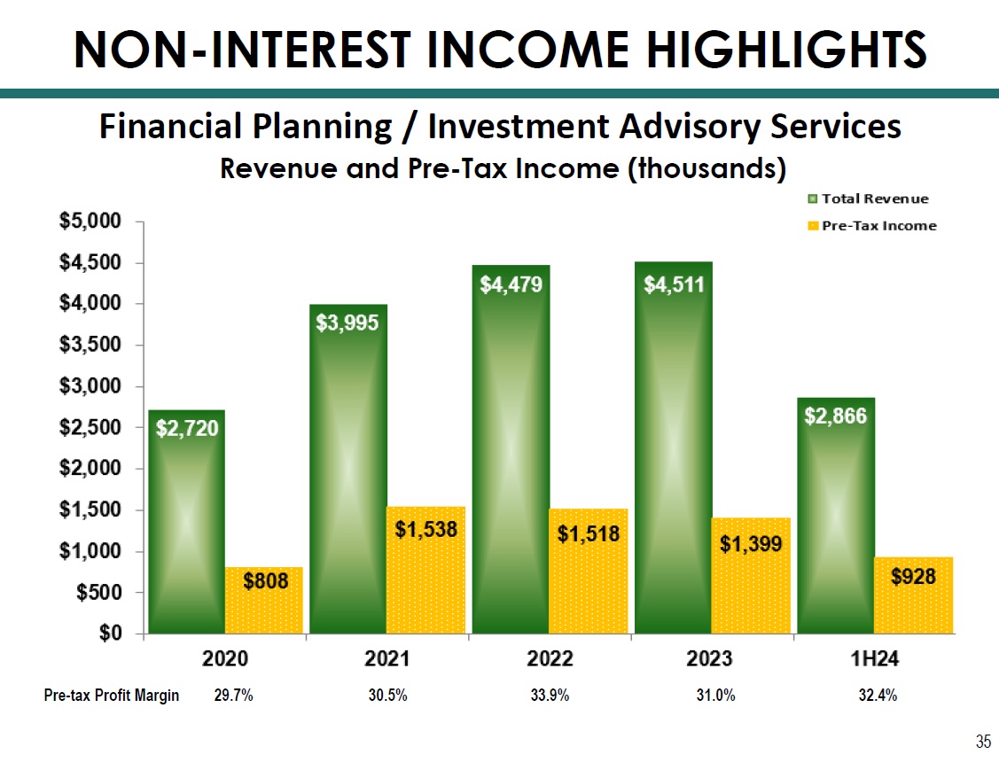 Financial Planning / Investment Advisory Services 34 NON - INTEREST INCOME HIGHLIGHTS