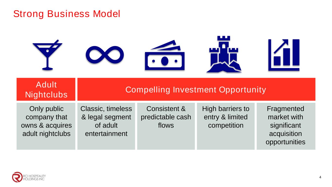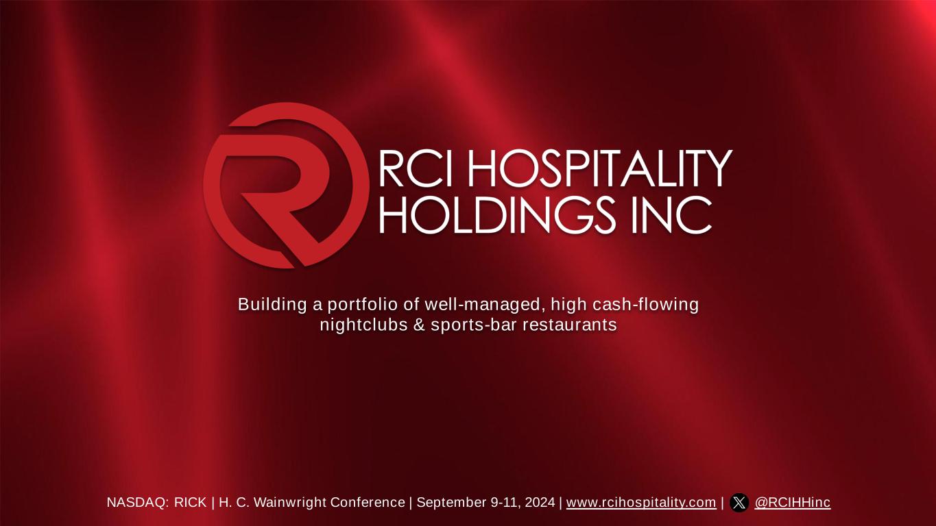Building a portfolio of well-managed, high cash-flowing nightclubs & sports-bar restaurants NASDAQ: RICK | H. C. Wainwright Conference | September 9-11, 2024 | www.rcihospitality.com | @RCIHHinc