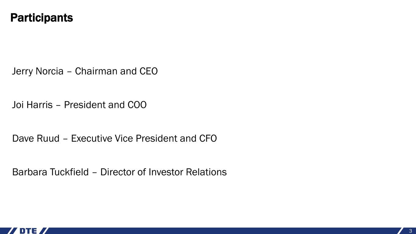 Participants 3 Jerry Norcia – Chairman and CEO Joi Harris – President and COO Dave Ruud – Executive Vice President and CFO Barbara Tuckfield – Director of Investor Relations
