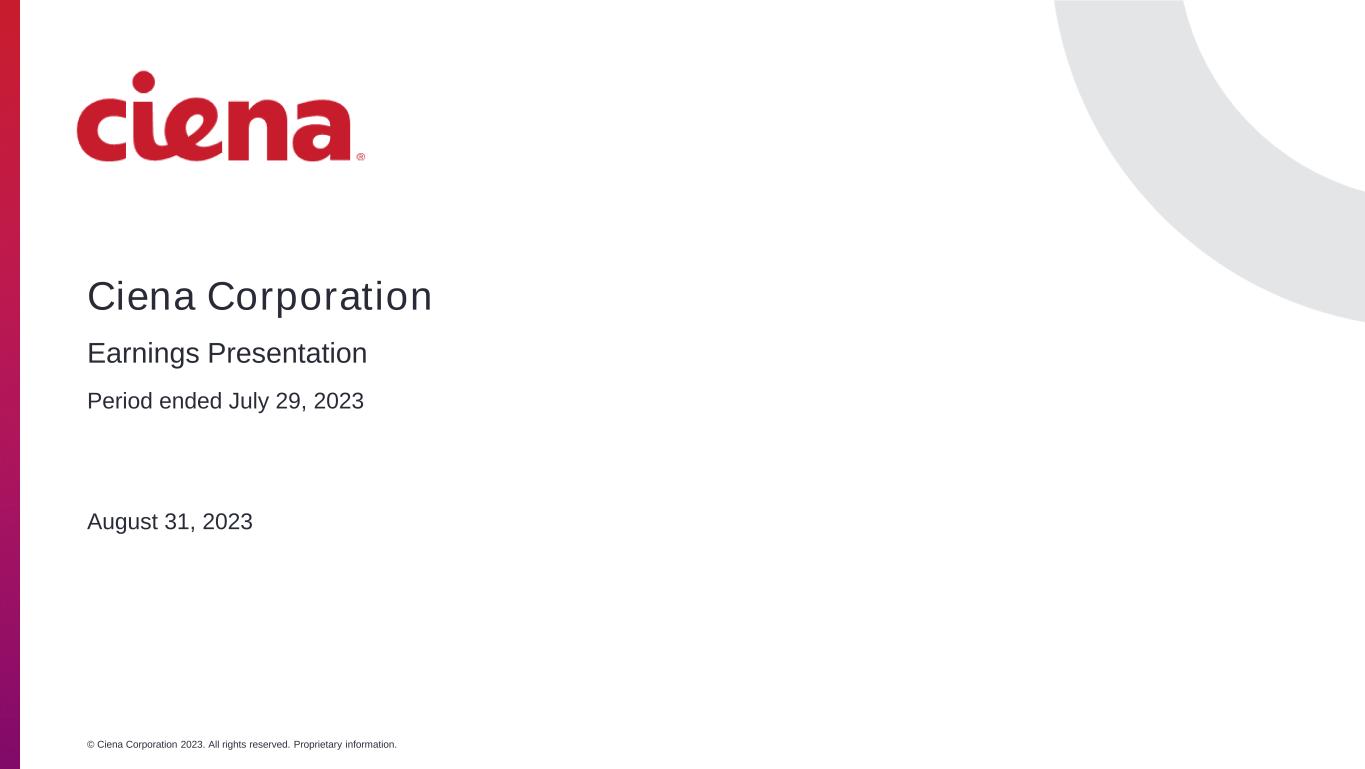 © Ciena Corporation 2023. All rights reserved. Proprietary information. Ciena Corporation Period ended July 29, 2023 August 31, 2023 Earnings Presentation