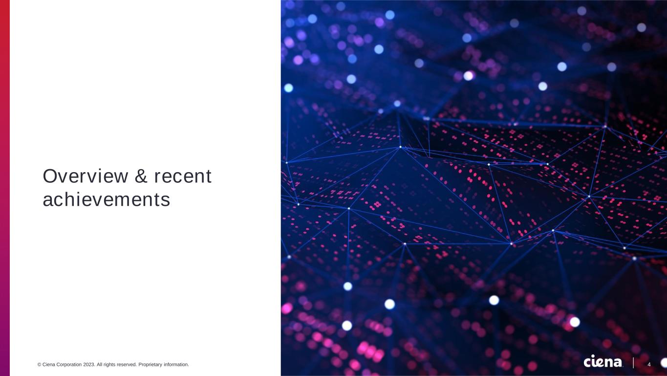 3© Ciena Corporation 2023. All rights reserved. Proprietary information. Table of Contents 1 Overview & recent achievements 2 Market context and Ciena's portfolio 3 Q3 FY 2023 financial performance 4 Appendix