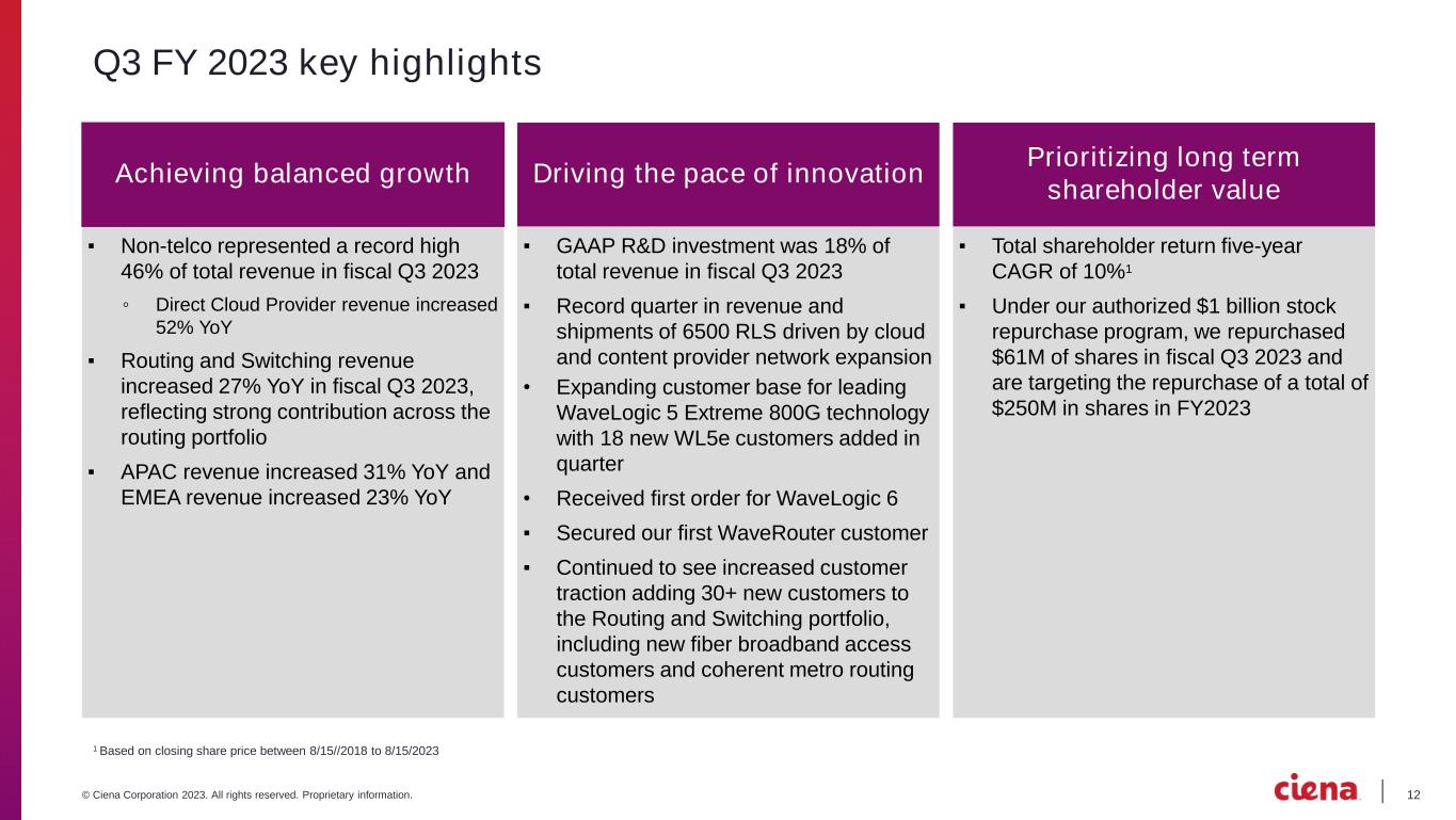 11© Ciena Corporation 2023. All rights reserved. Proprietary information. Q3 FY 2023 results