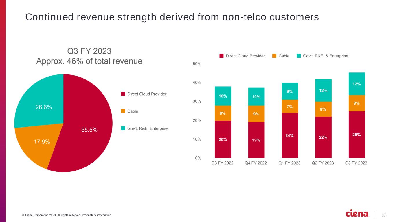 16© Ciena Corporation 2023. All rights reserved. Proprietary information. Continued revenue strength derived from non-telco customers