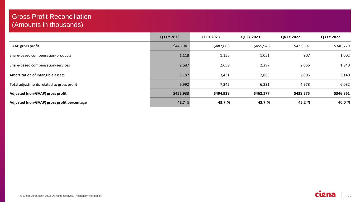 18© Ciena Corporation 2023. All rights reserved. Proprietary information. Q3 FY 2023 appendix