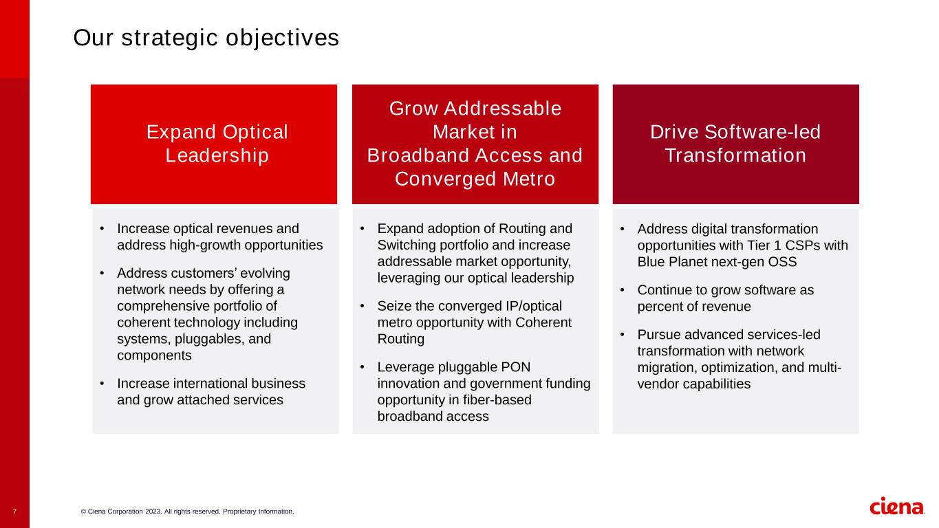 © Ciena Corporation 2023. All rights reserved. Proprietary Information.10 Our strategy leverages our Optical technology to create expanded addressable market opportunities