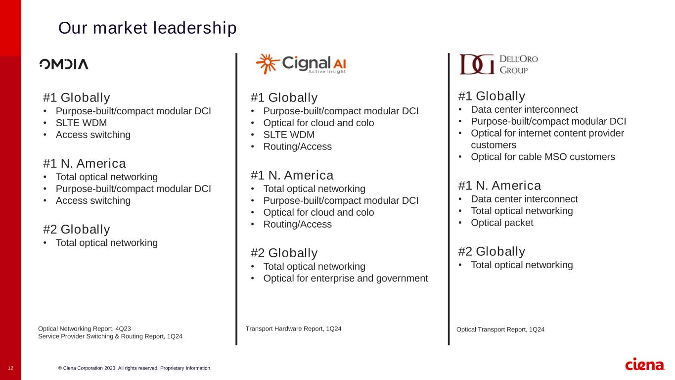 © Ciena Corporation 2023. All rights reserved. Proprietary Information.11 Our addressable market expansion strategy allows us to access higher growth markets 1Sources: LightCounting and Ciena internal analysis.