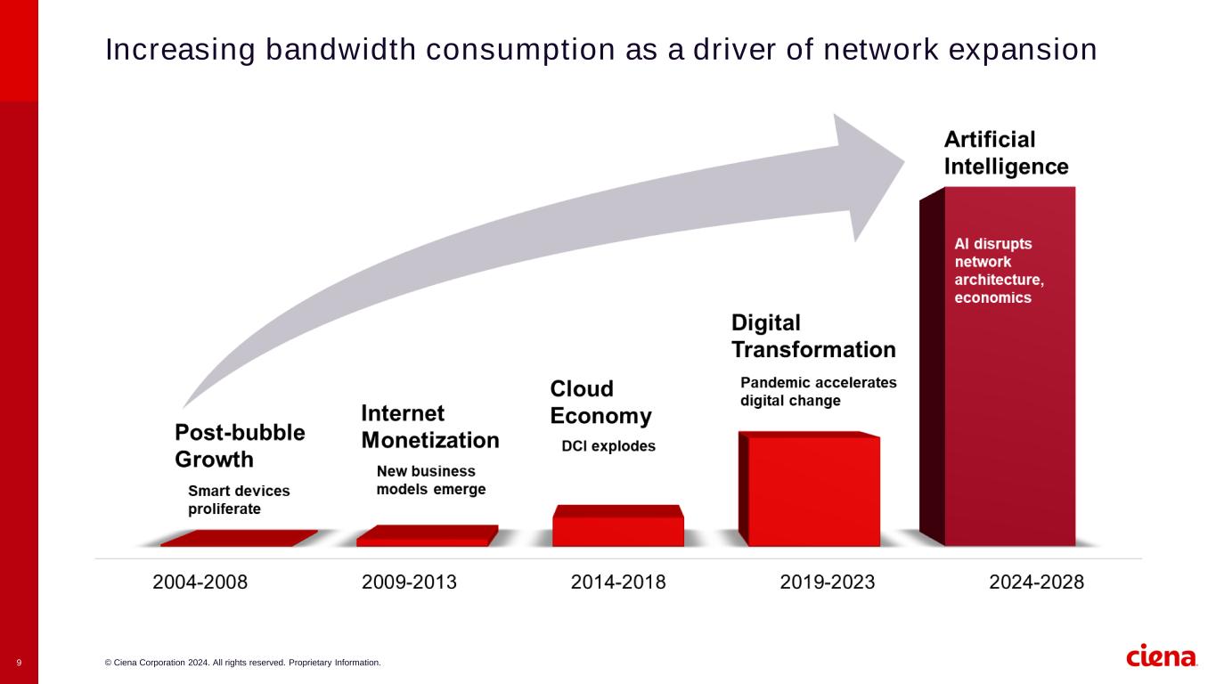 © Ciena Corporation 2024. All rights reserved. Proprietary Information.9 Increasing bandwidth consumption as a driver of network expansion
