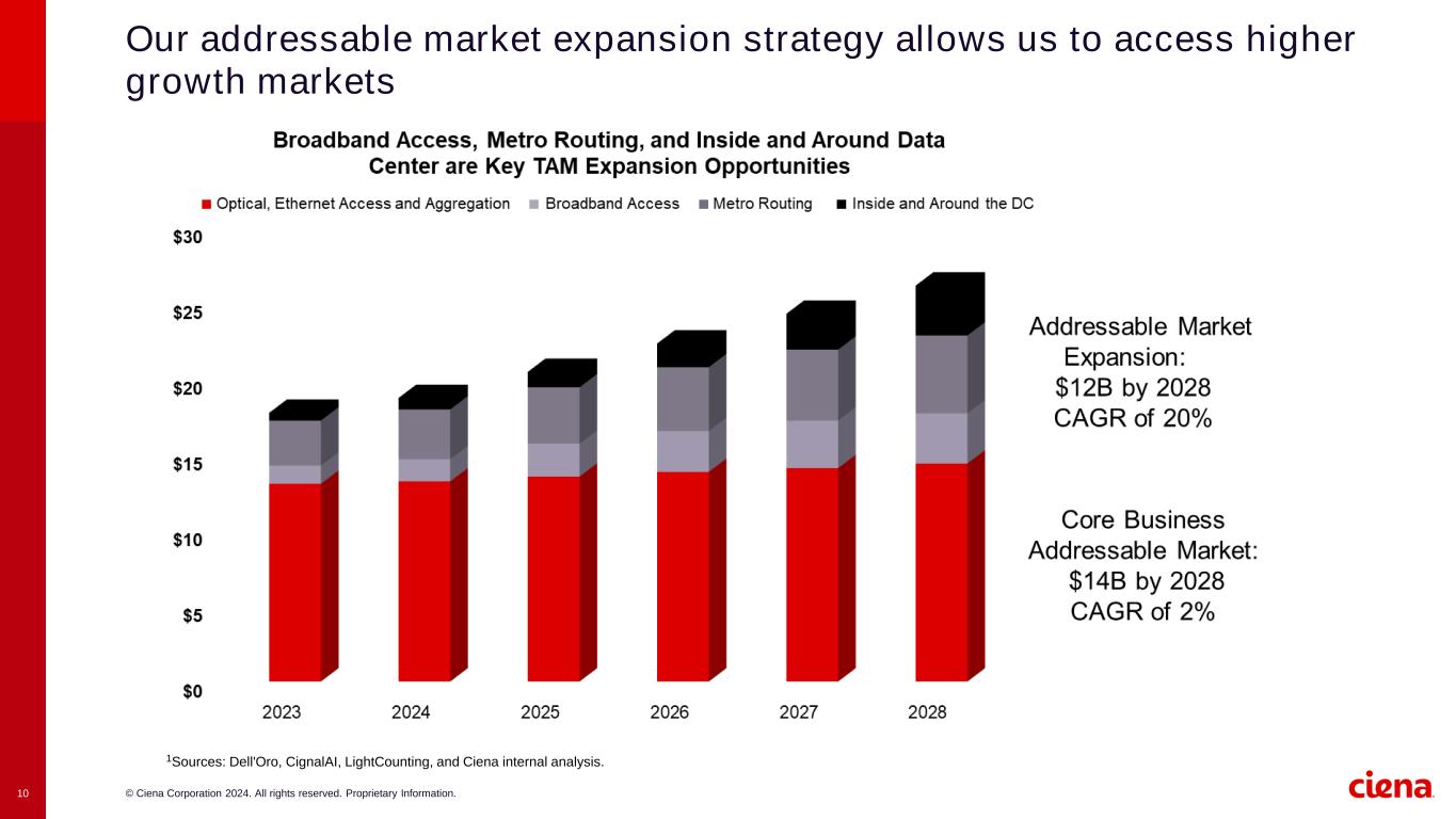 © Ciena Corporation 2024. All rights reserved. Proprietary Information.10 Our addressable market expansion strategy allows us to access higher growth markets 1Sources: Dell'Oro, CignalAI, LightCounting, and Ciena internal analysis.