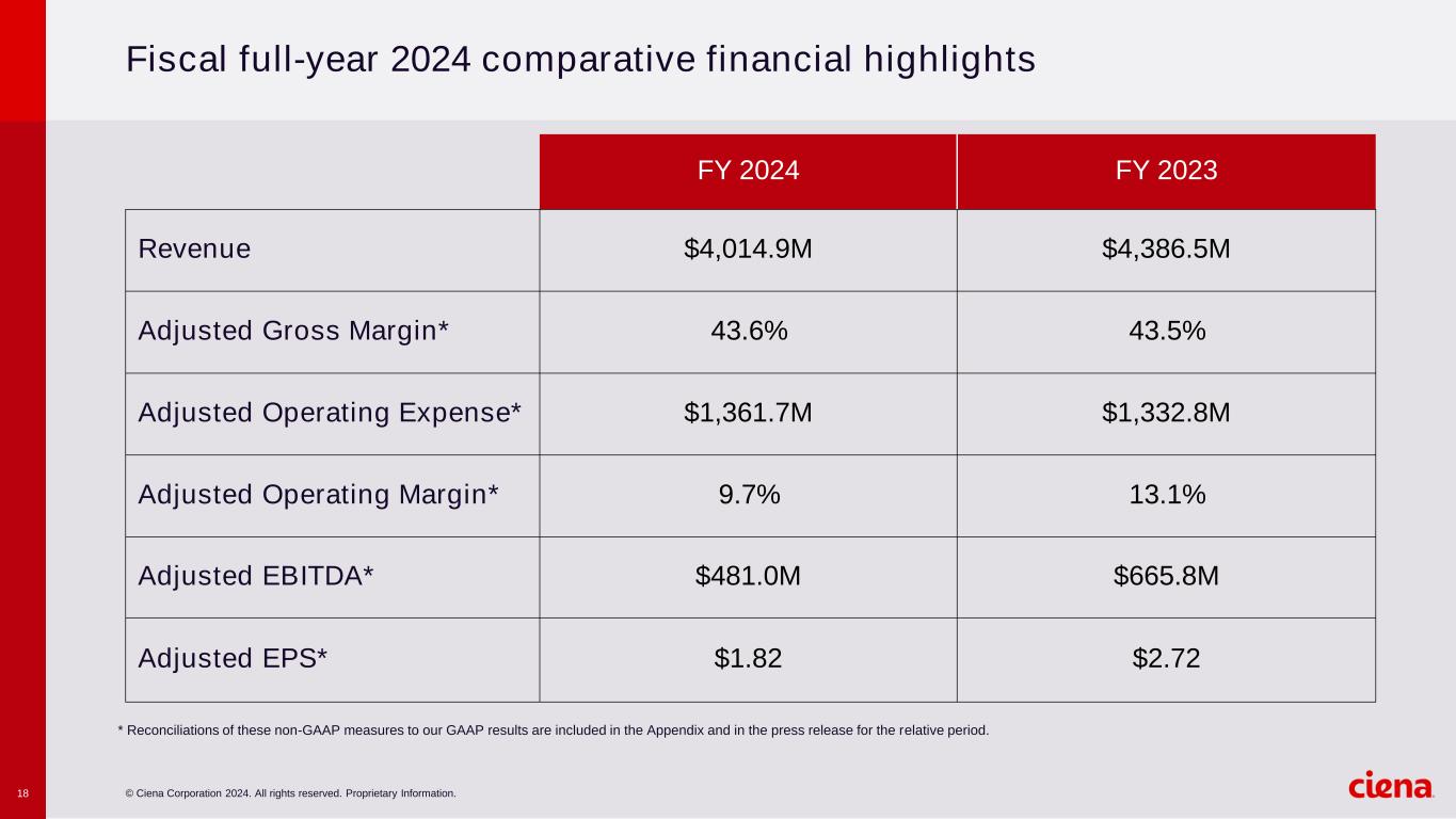 © Ciena Corporation 2024. All rights reserved. Proprietary Information. Fiscal full-year 2024 results