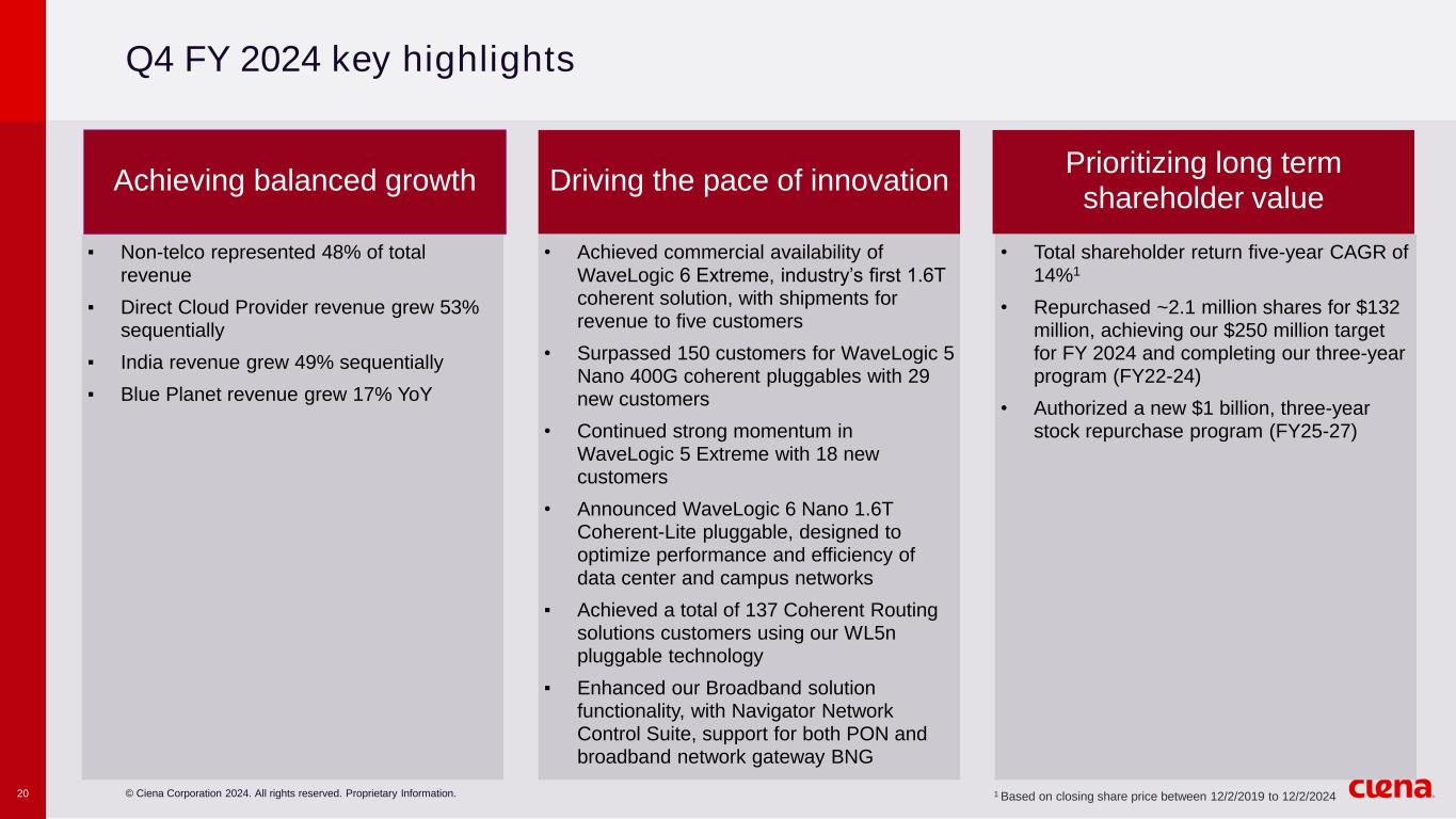 © Ciena Corporation 2024. All rights reserved. Proprietary Information. Q4 FY 2024 results