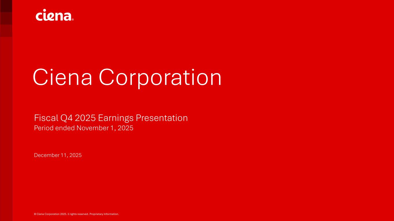 © Ciena Corporation 2025. ll rights reserved. Proprietary Information. Ciena Corporation Fiscal Q4 2025 Earnings Presentation Period ended November 1, 2025 December 11, 2025