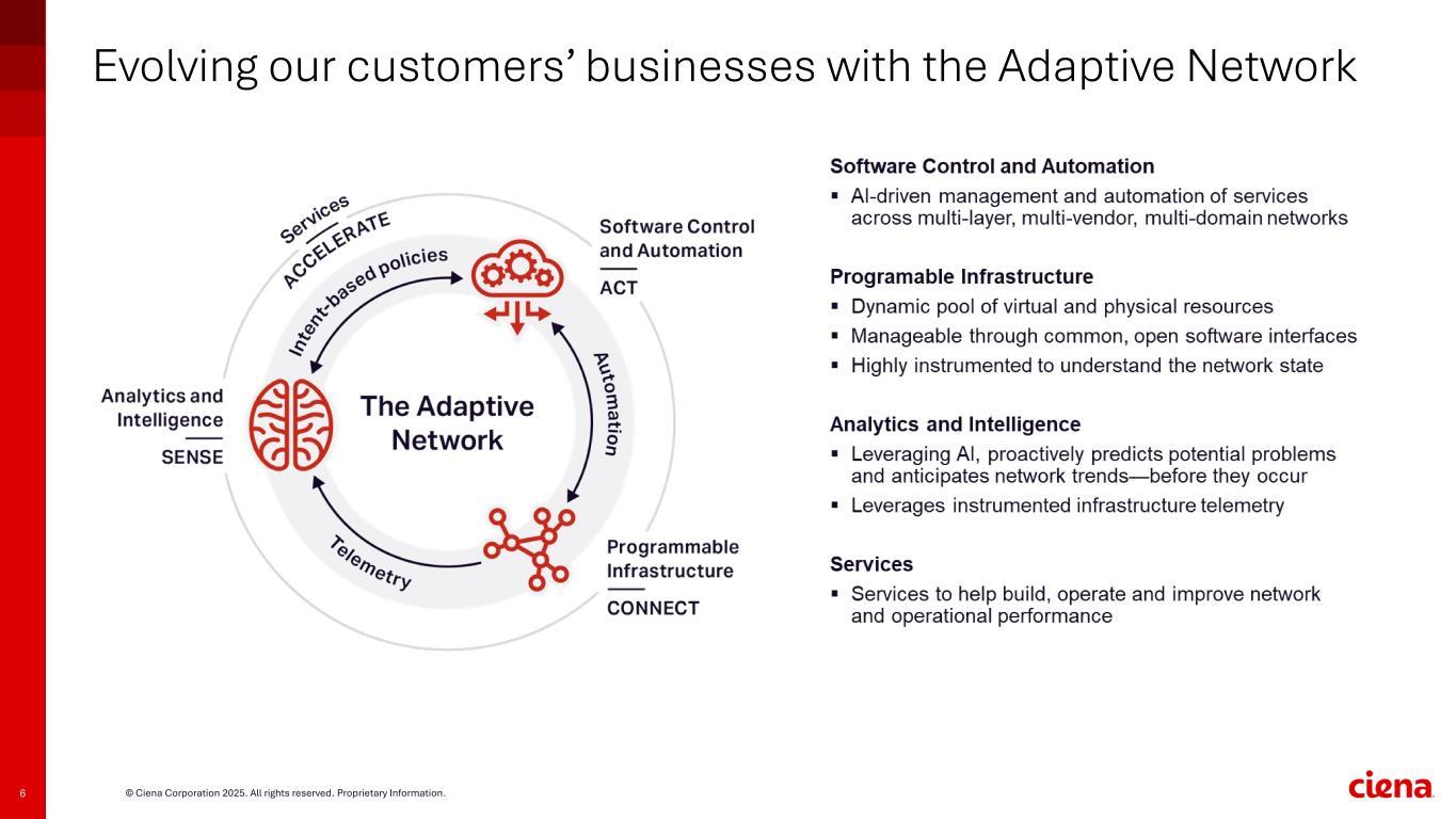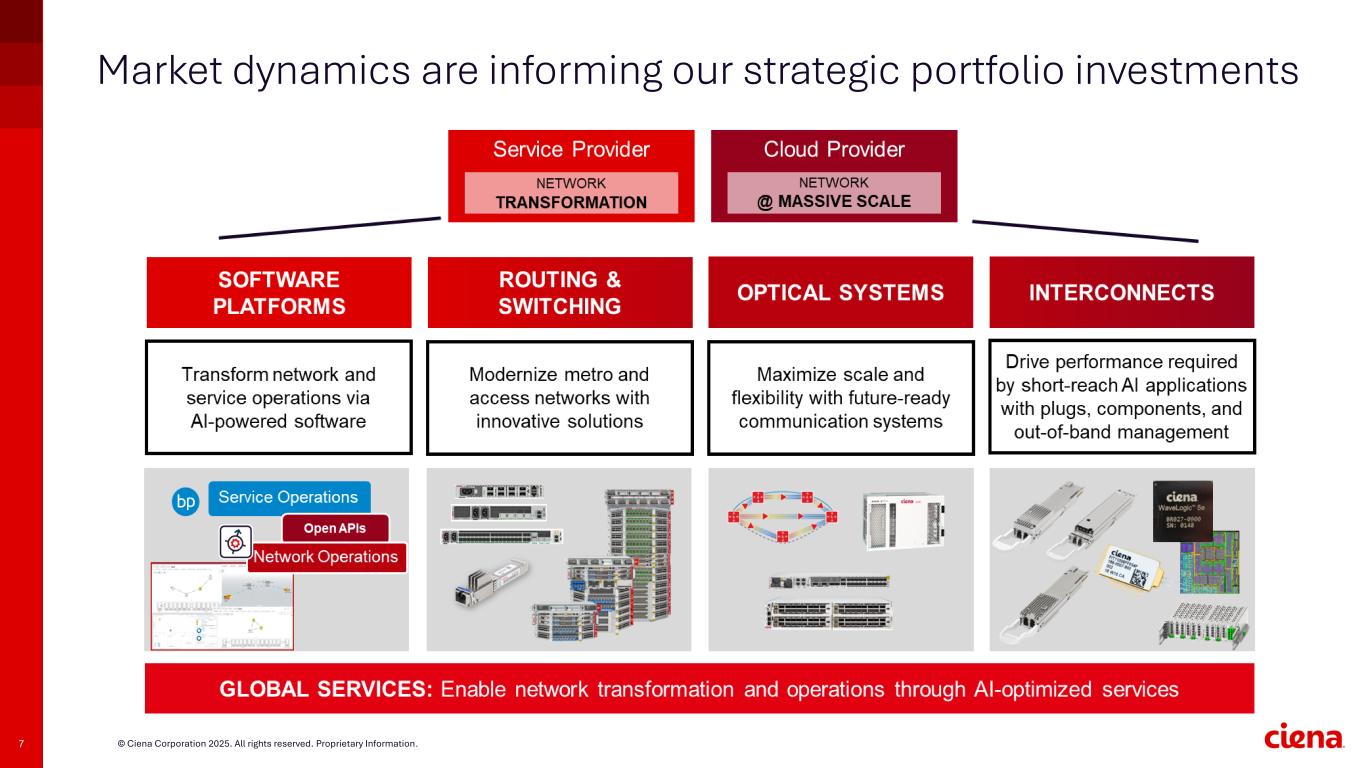 6 © Ciena Corporation 2025. All rights reserved. Proprietary Information. Evolving our customers’ businesses with the Adaptive Network