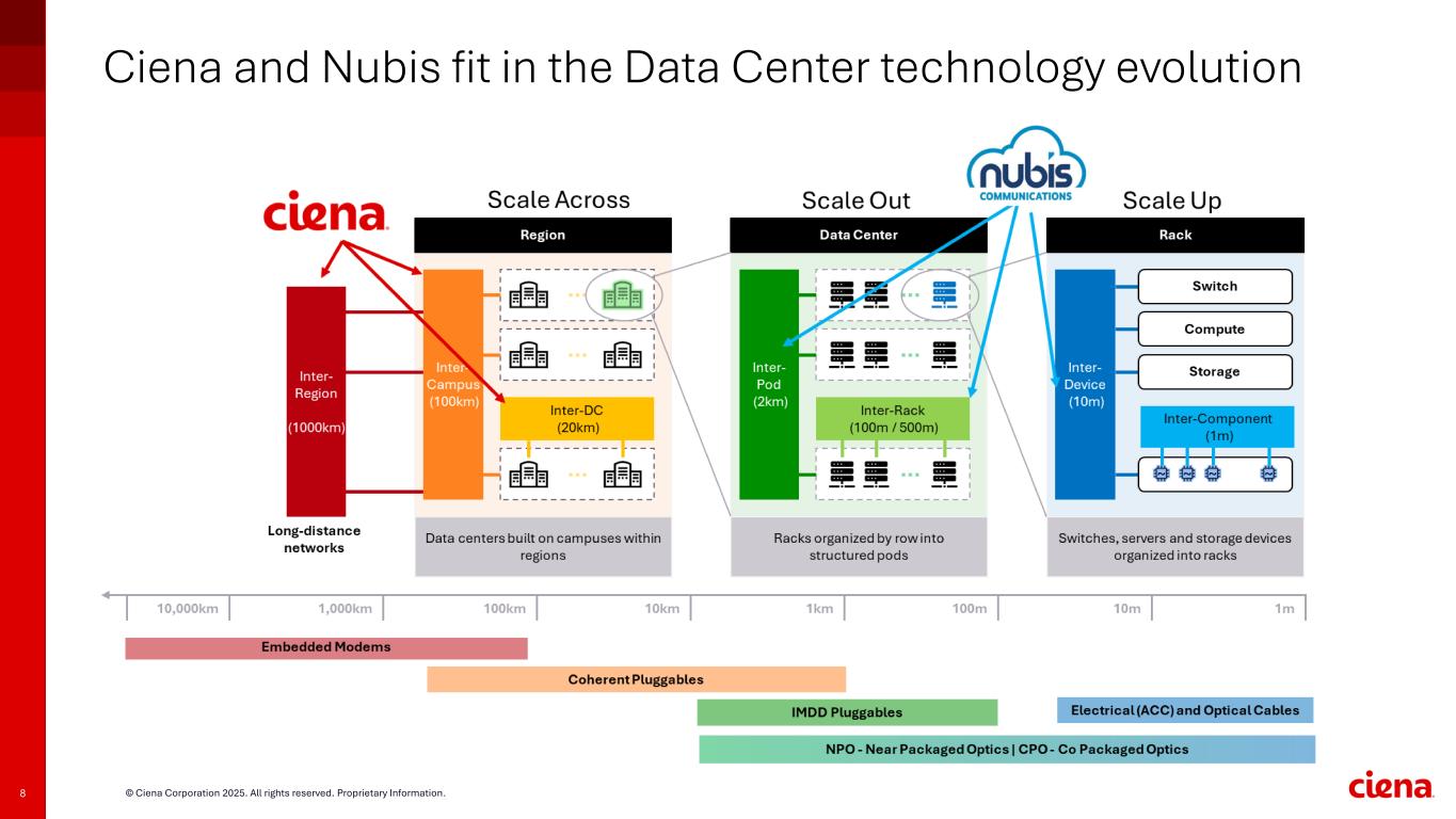 8 © Ciena Corporation 2025. All rights reserved. Proprietary Information. Ciena and Nubis fit in the Data Center technology evolution