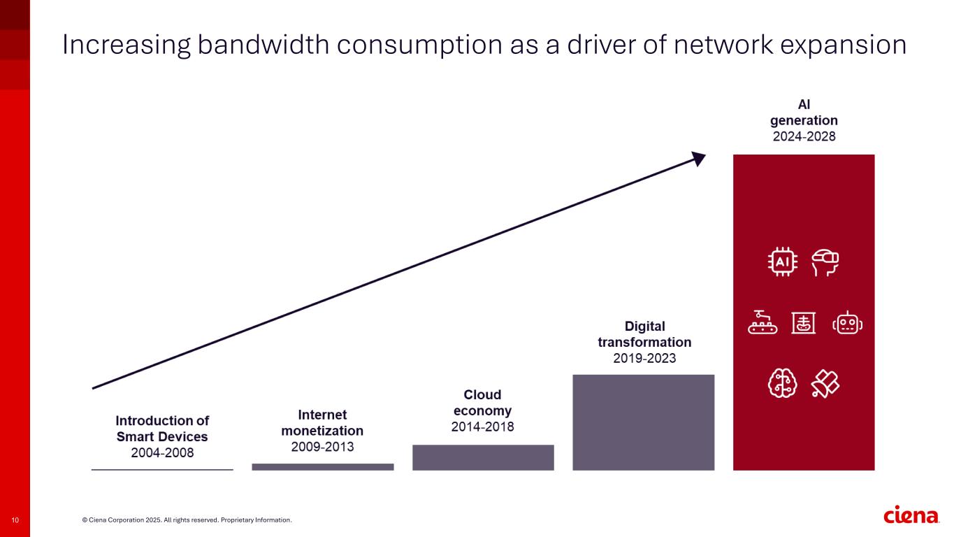10 © Ciena Corporation 2025. All rights reserved. Proprietary Information. Increasing bandwidth consumption as a driver of network expansion